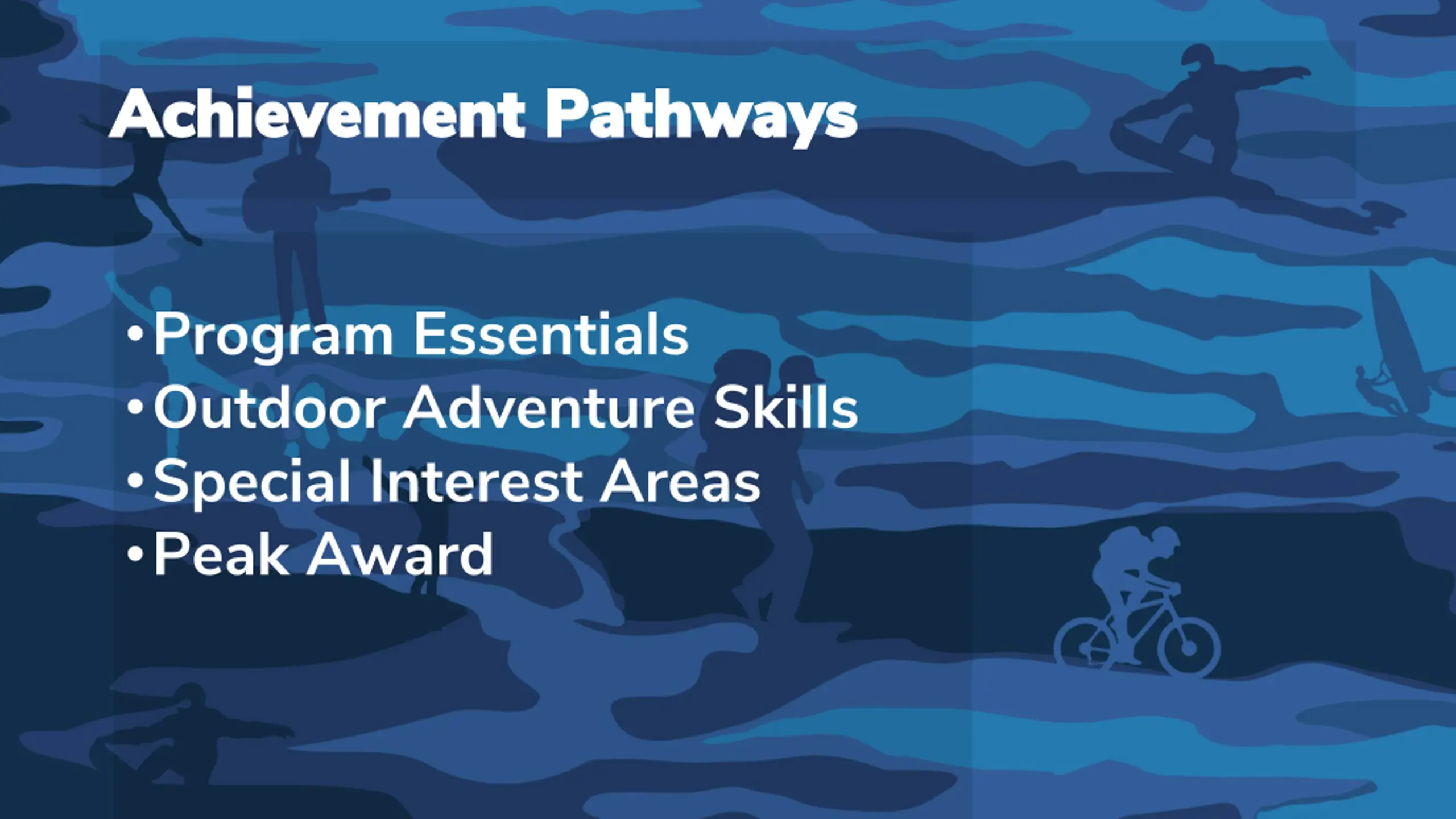 Achievement Pathways Achievement Pathways Program Essentials Outdoor Adventure Skills Special Interest Areas Peak Award