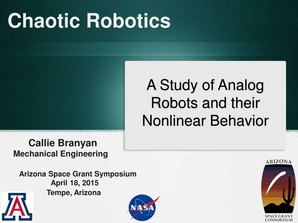 Chaotic Robotics A Study of Analog Robots and their Nonlinear Behavior Callie Branyan Mechanical Engineering Arizona Space Grant Symposium April 18, 2015 Tempe, Arizona