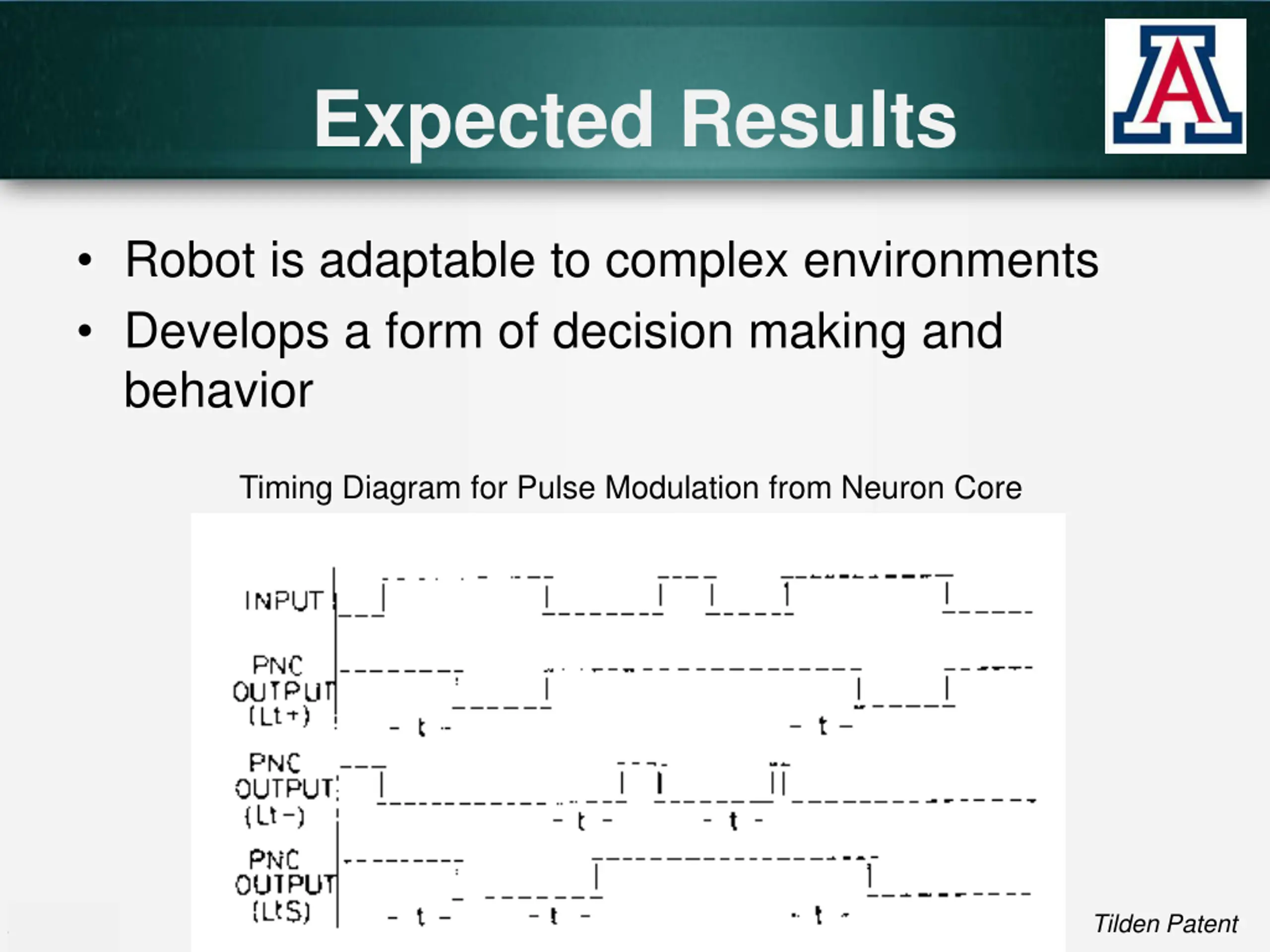 Expected Results Robot is adaptable to complex environments Develops a form of decision making and behavior Timing Diagram for Pulse Modulation from Neuron Core Tilden Patent