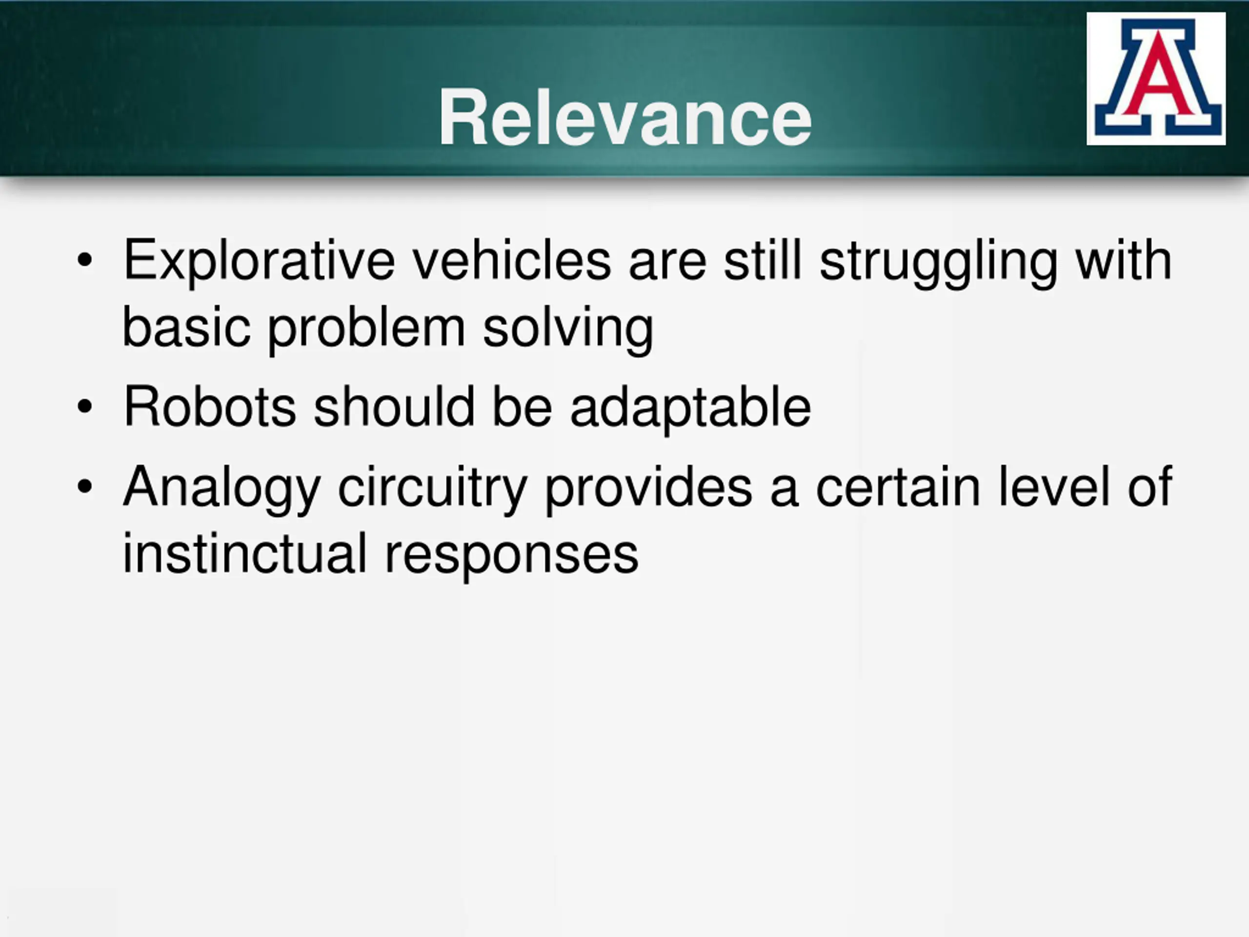 Relevance Explorative vehicles are still struggling with basic problem solving Robots should be adaptable Analogy circuitry provides a certain level of instinctual responses