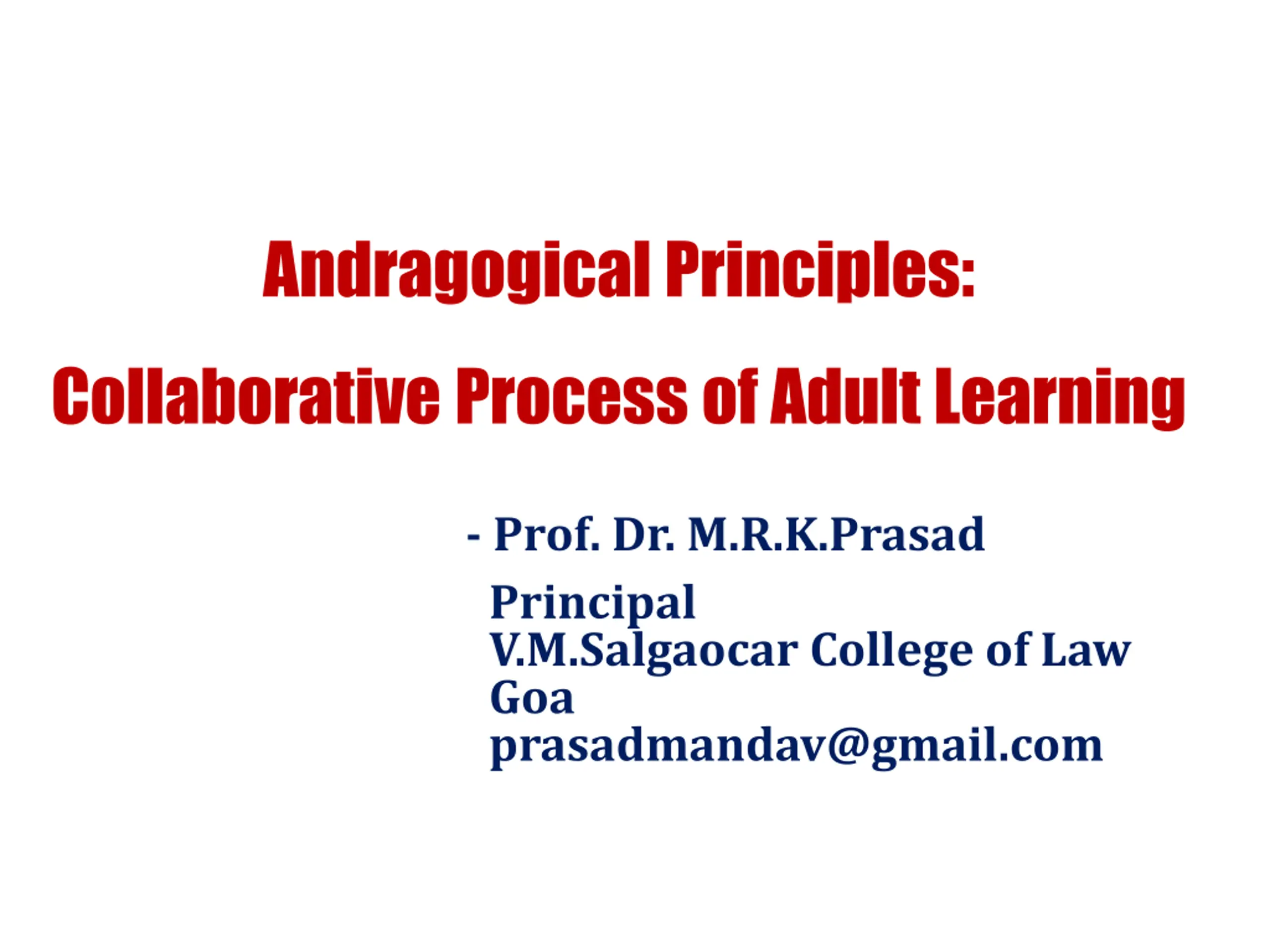 Andragogical Principles: Collaborative Process of Adult Learning - Prof. Dr. M.R.K.Prasad Principal V.M.Salgaocar College of Law Goa prasadmandav@gmail.com