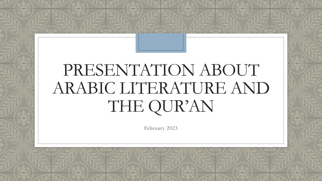 PRESENTATION ABOUT ARABIC LITERATURE AND THE QUR AN February 2023