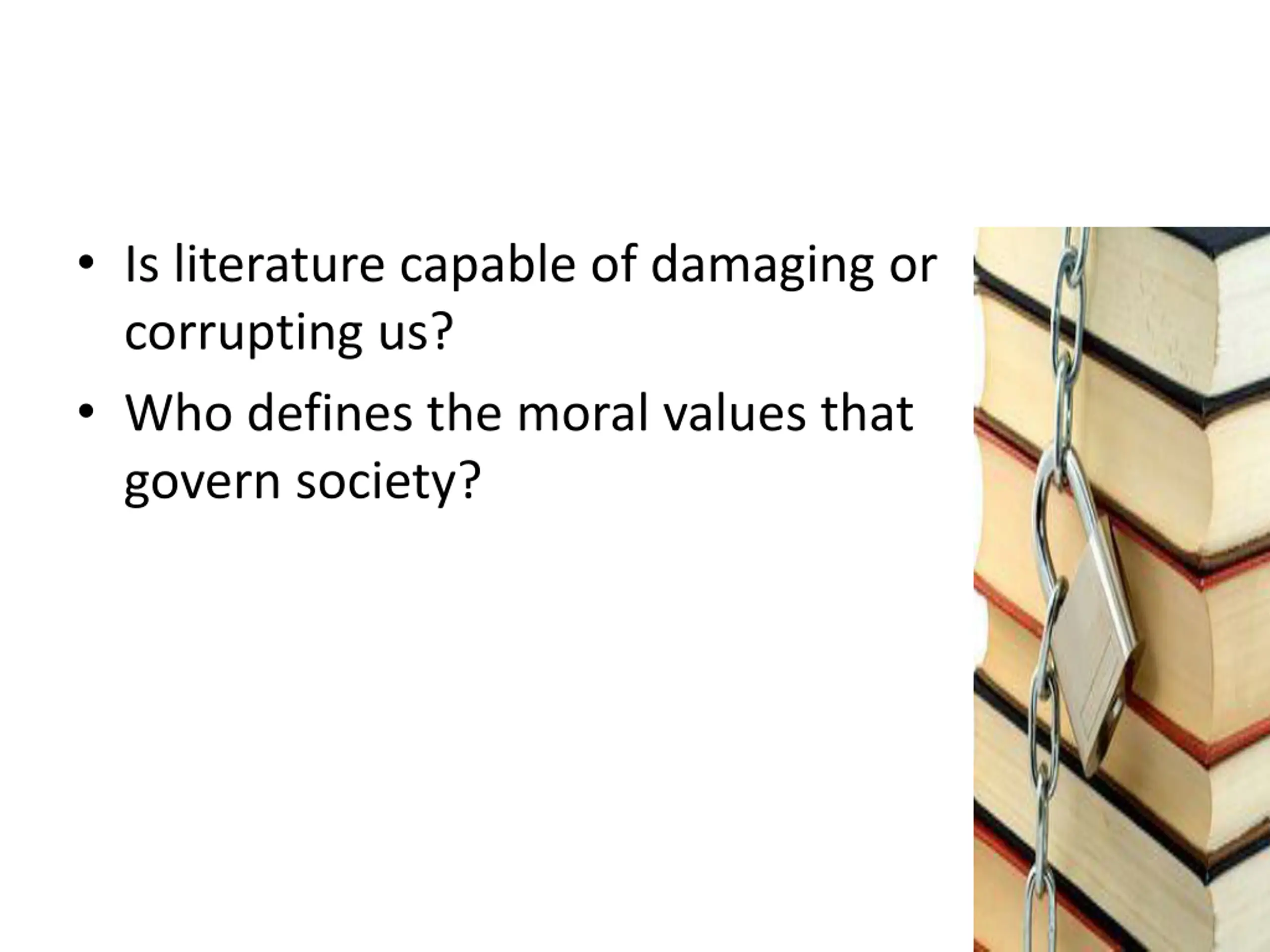 http://annieneugebauer.com/wp-content/uploads/2012/01/censorship.jpghttp://annieneugebauer.com/wp-content/uploads/2012/01/censorship.jpg Is literature capable of damaging or corrupting us? Who defines the moral values that govern society?