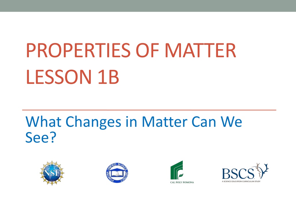 PROPERTIES OF MATTER LESSON 1B What Changes in Matter Can We See?