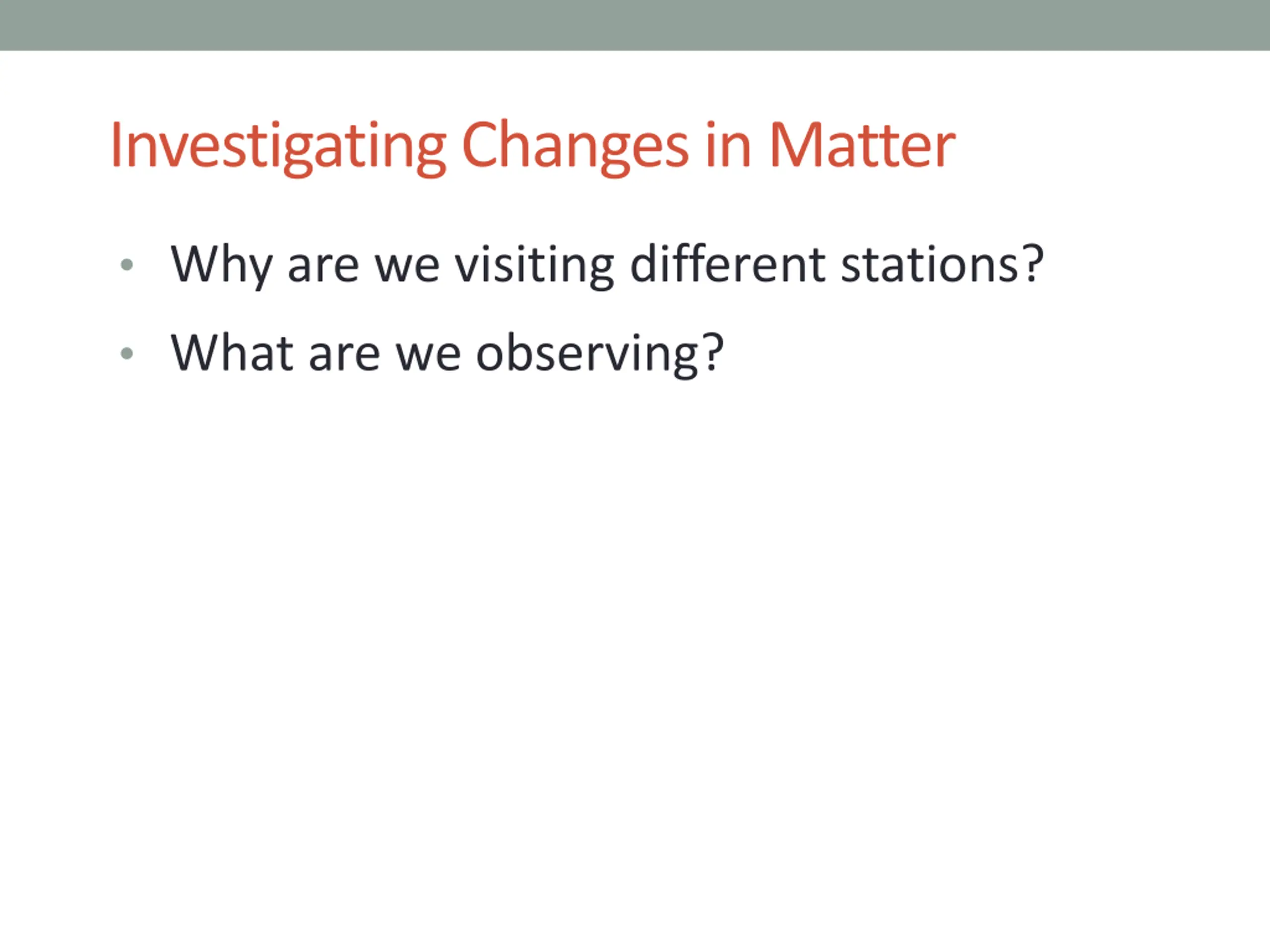 Investigating Changes in Matter Why are we visiting different stations? What are we observing?