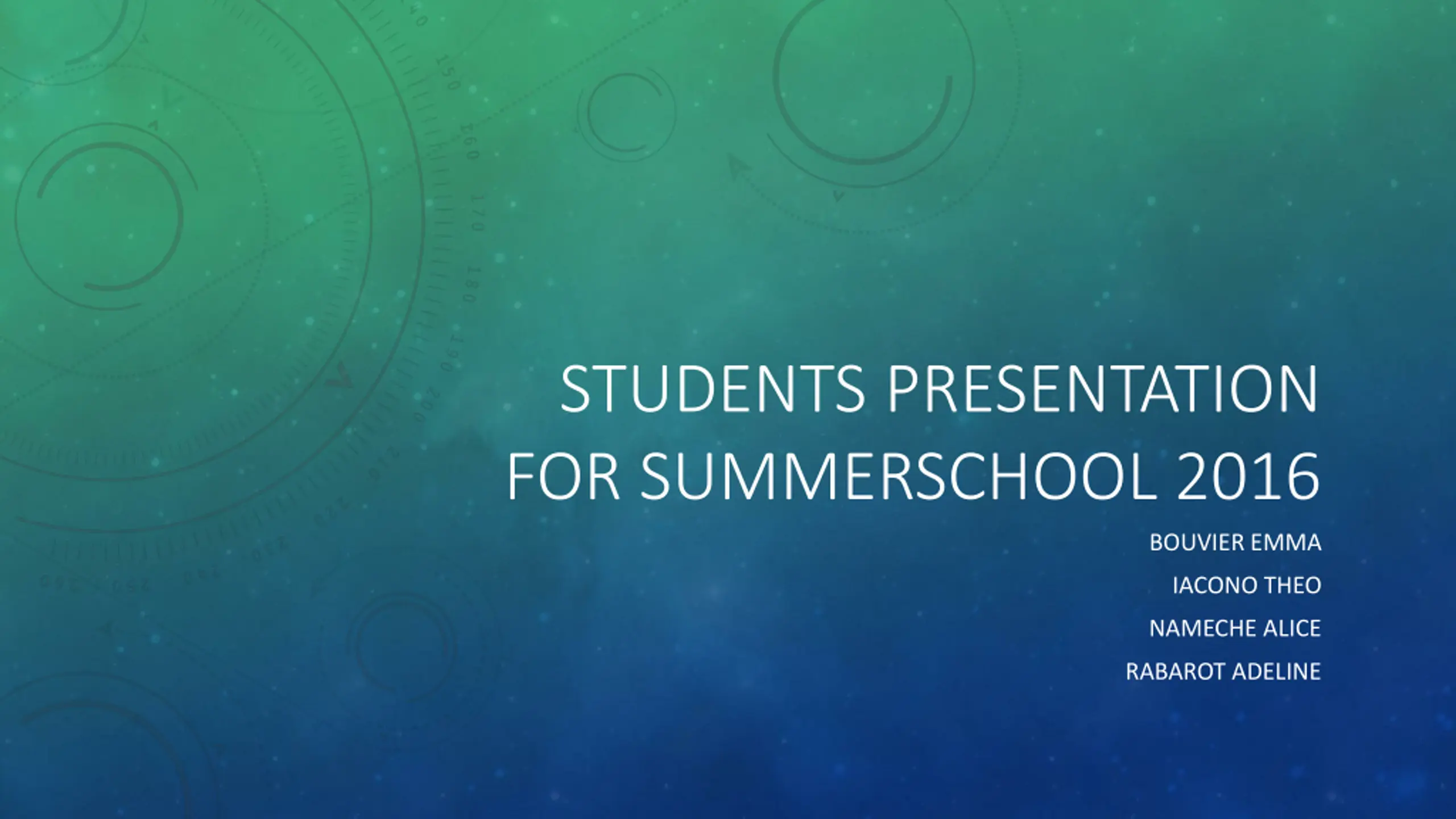 STUDENTS PRESENTATION FOR SUMMERSCHOOL 2016 BOUVIER EMMA IACONO THEO NAMECHE ALICE RABAROT ADELINE