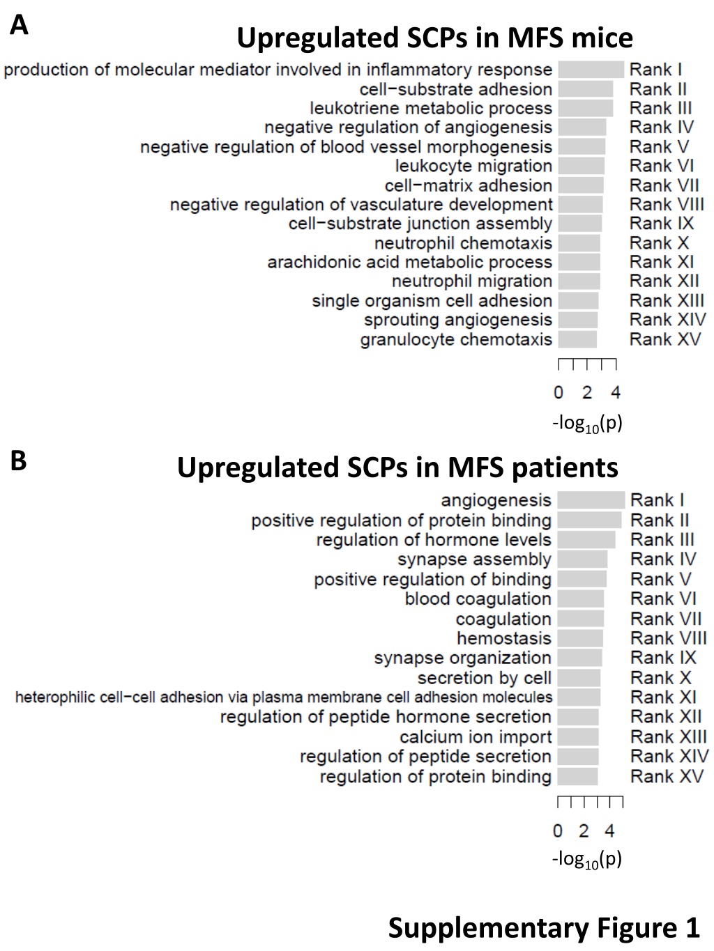 A Upregulated SCPs in MFS mice -log10(p) B Upregulated SCPs in MFS patients -log10(p) Supplementary Figure 1