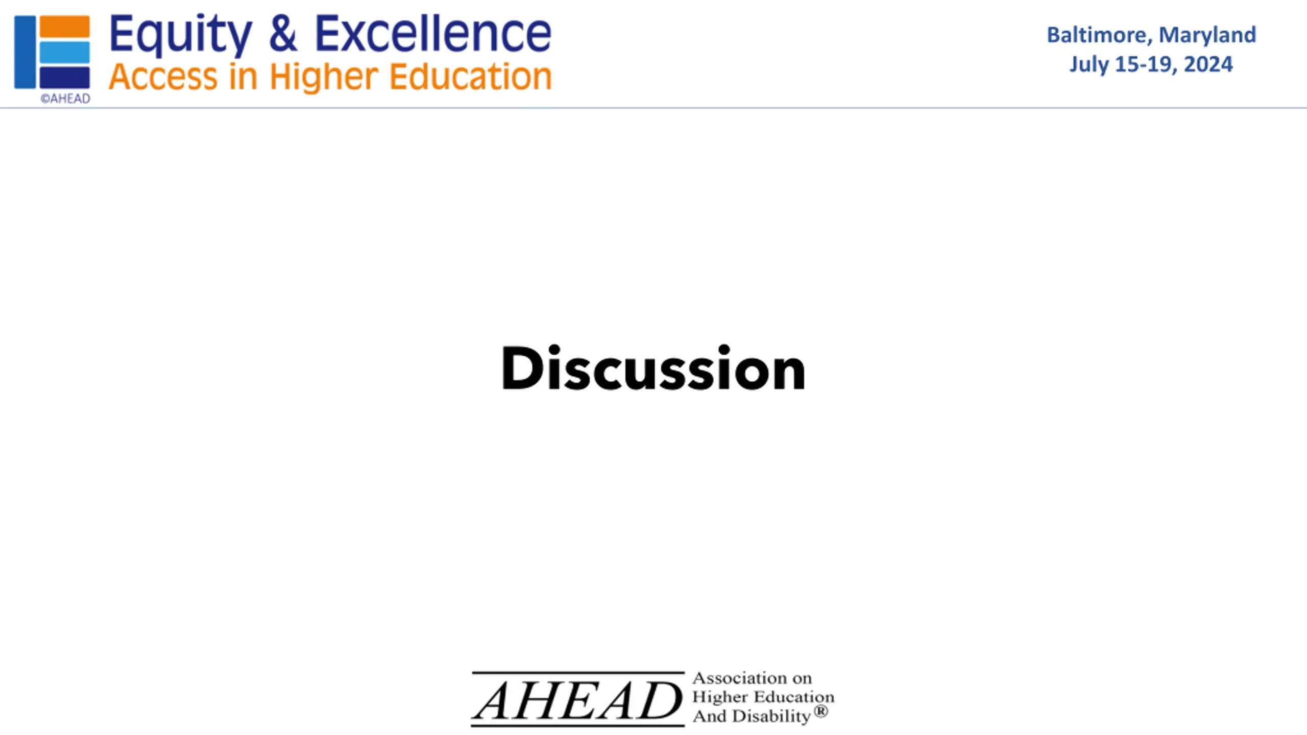 Baltimore, Maryland July 15-19, 2024 Discussion