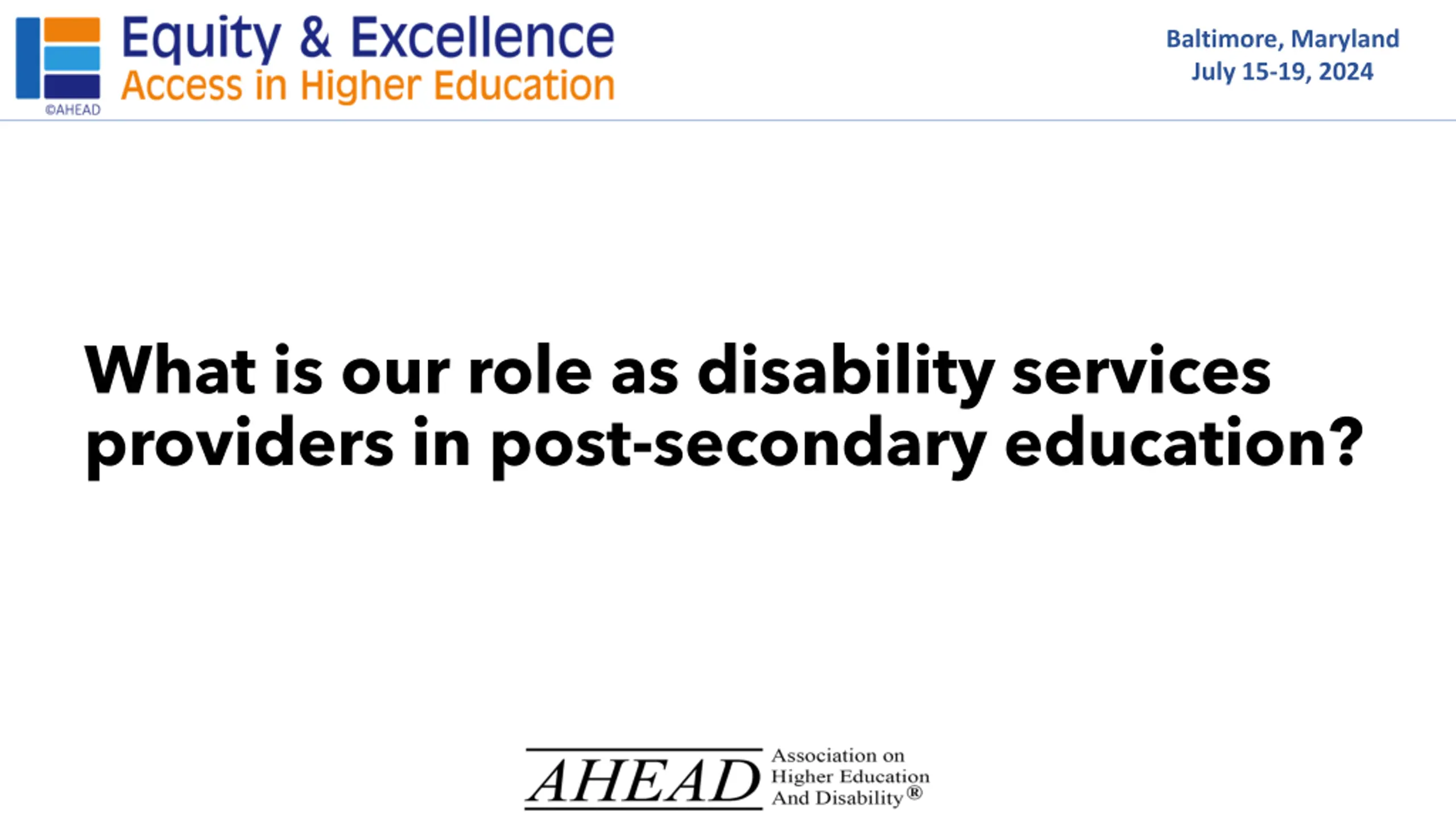 Baltimore, Maryland July 15-19, 2024 What is our role as disability services providers in post-secondary education?