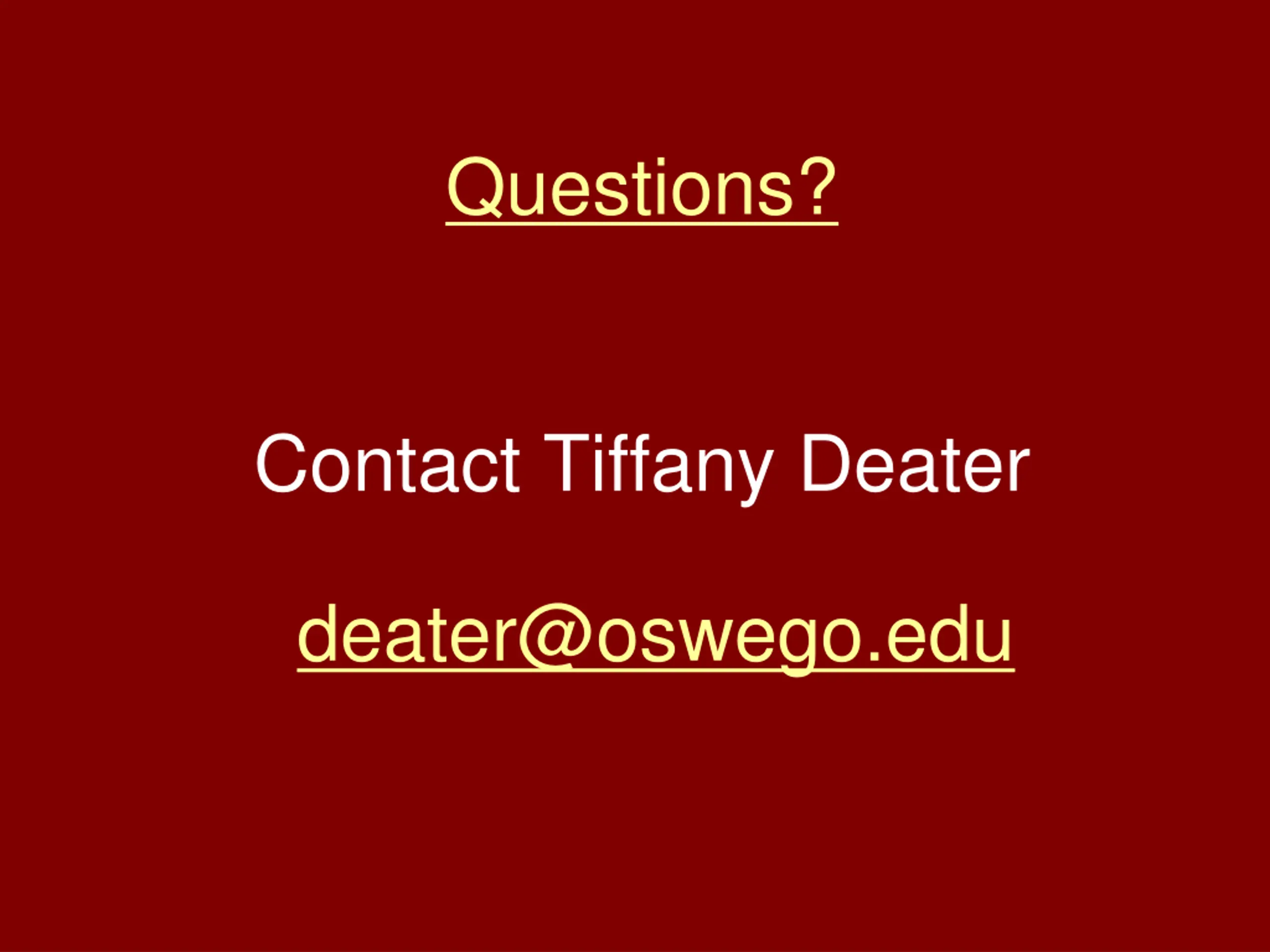 Questions? Contact Tiffany Deater deater@oswego.edu