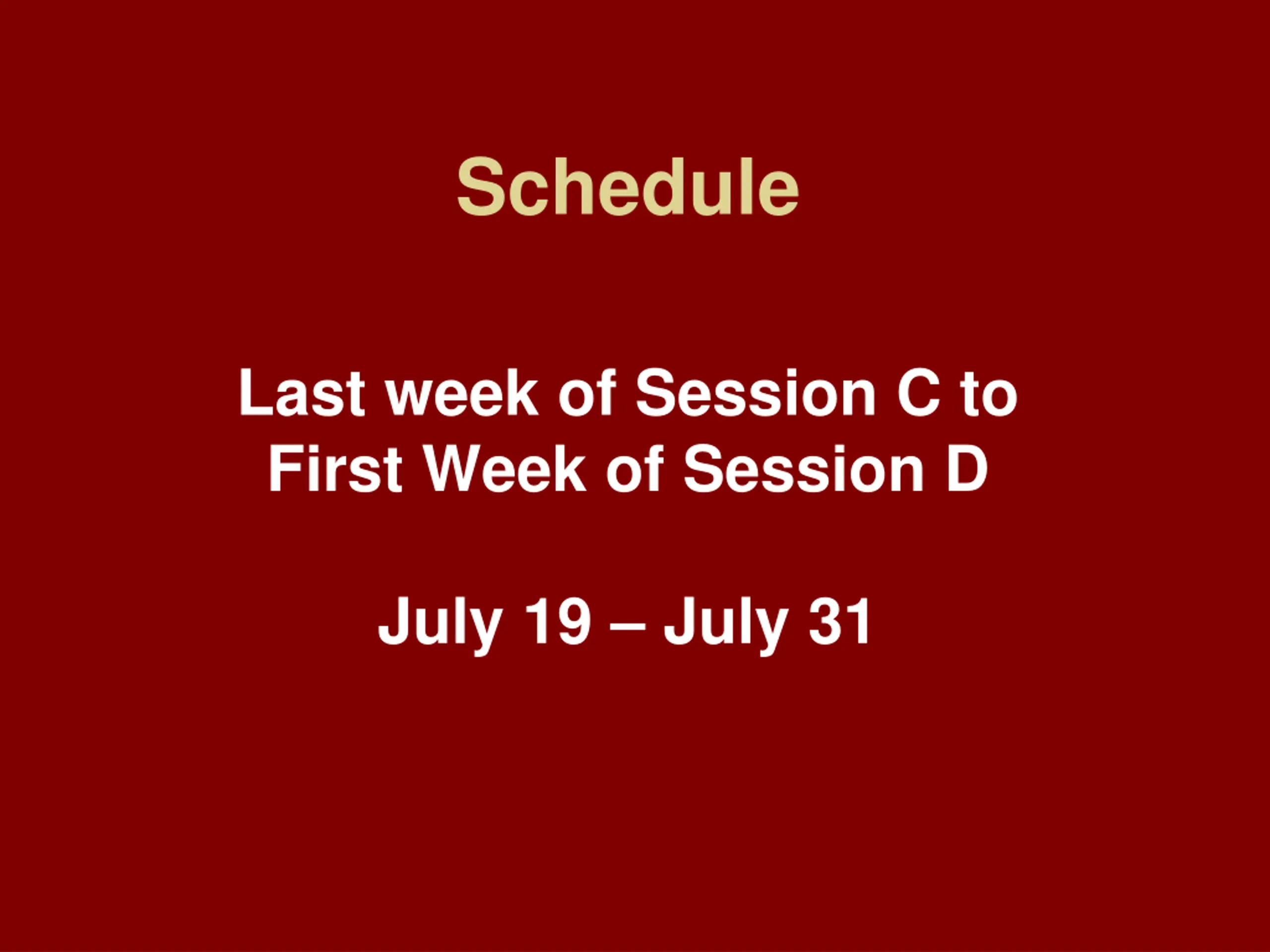 Schedule Last week of Session C to First Week of Session D July 19 July 31