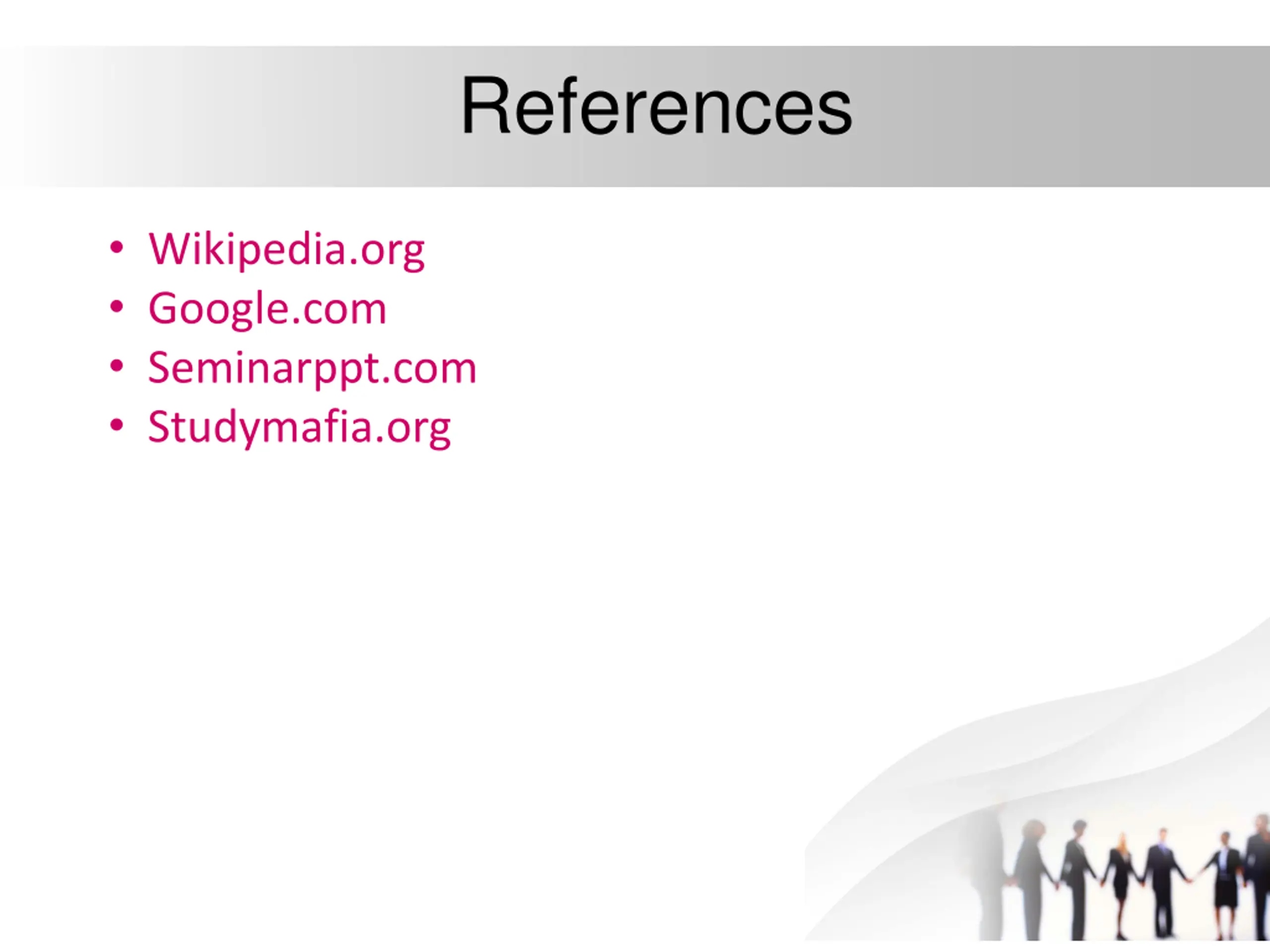 References Wikipedia.org Google.com Seminarppt.com Studymafia.org