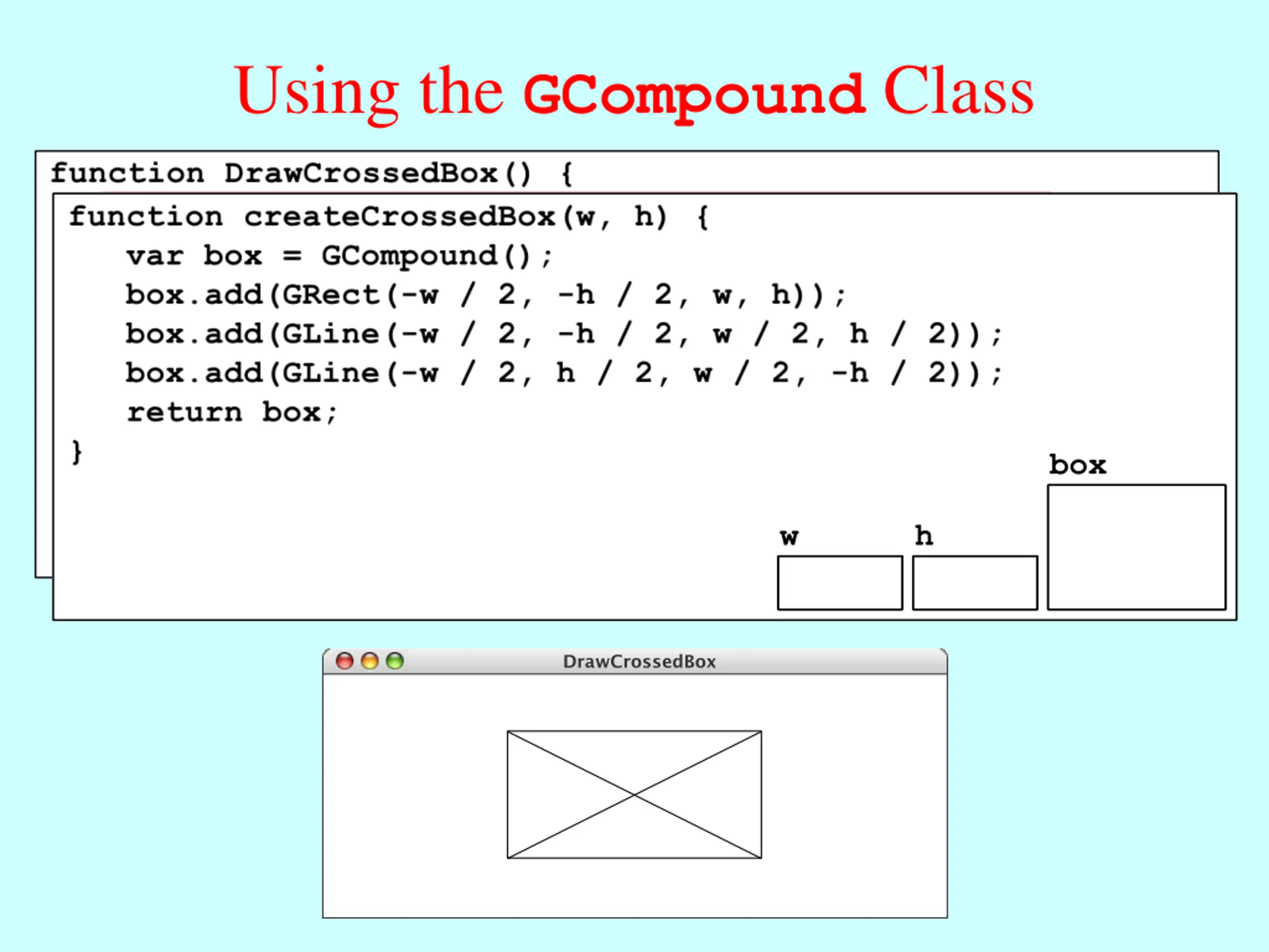Using the GCompound Class box box box gw h h w w 200 100 DrawCrossedBox