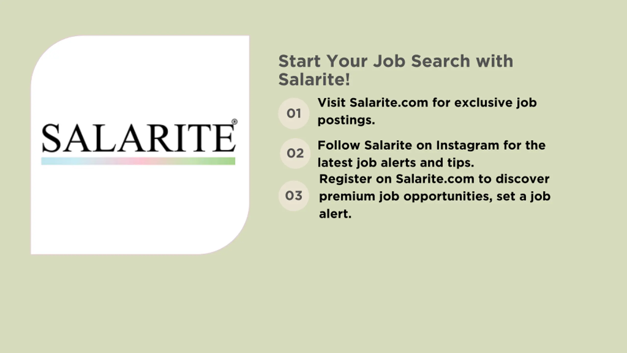 Start Your Job Search with Salarite! Visit Salarite.com for exclusive job postings. 01 Follow Salarite on Instagram for the latest job alerts and tips. Register on Salarite.com to discover premium job opportunities, set a job alert. 02 03