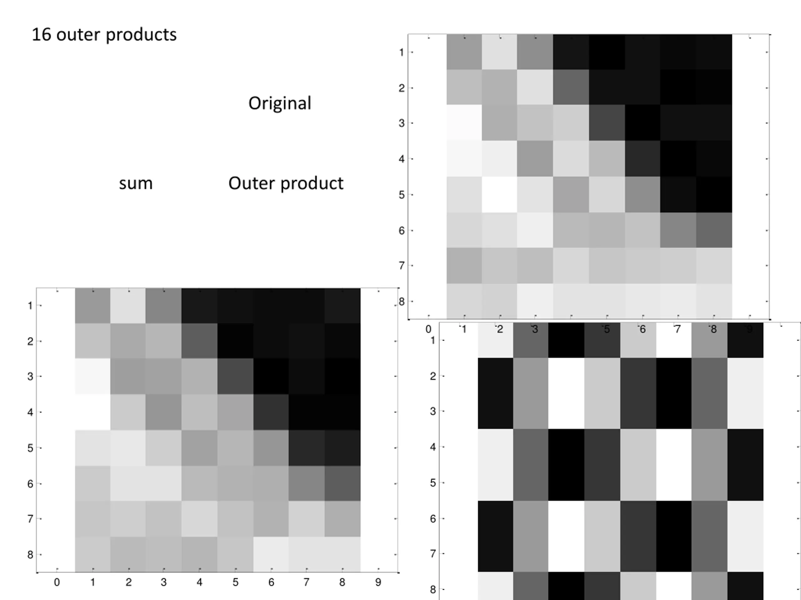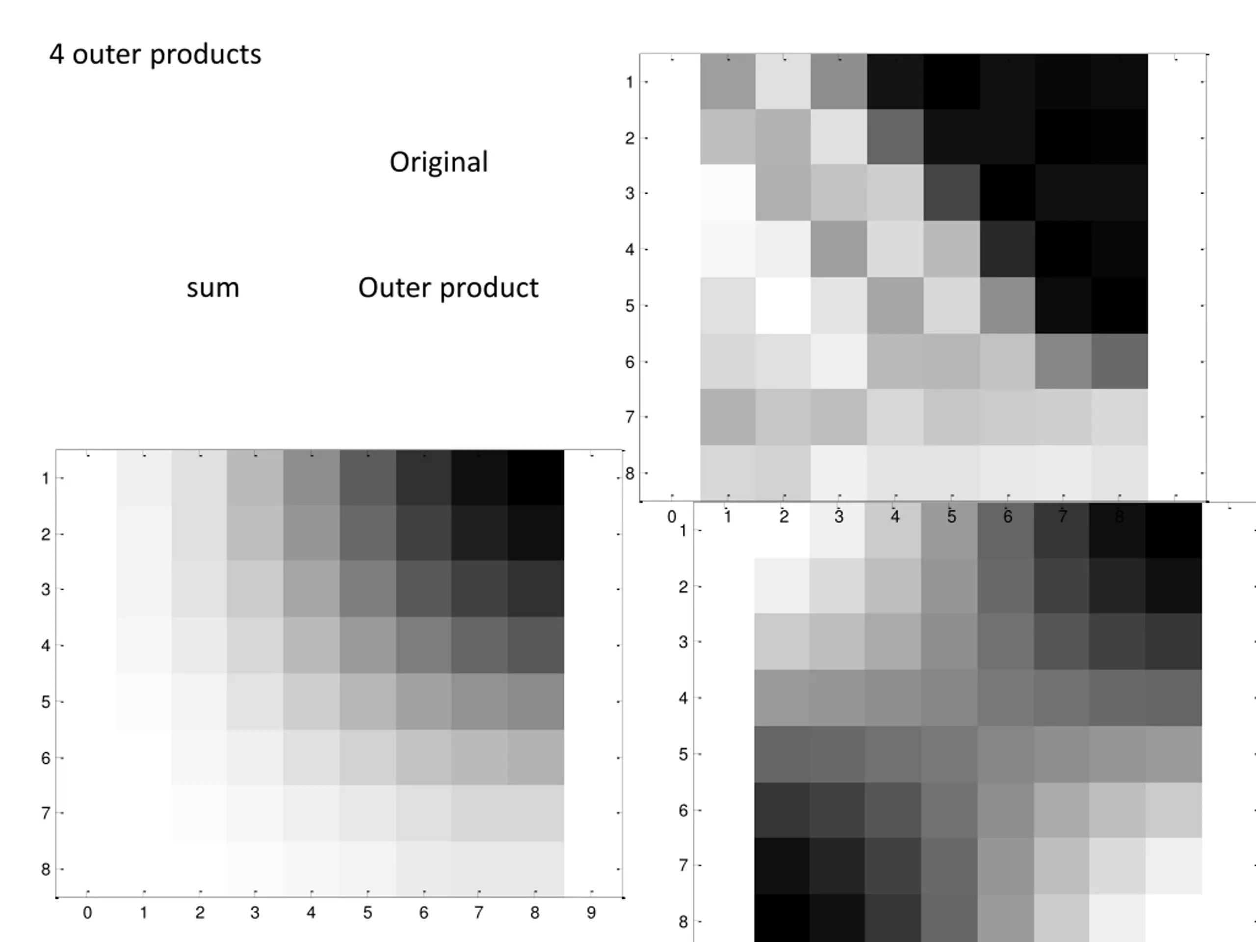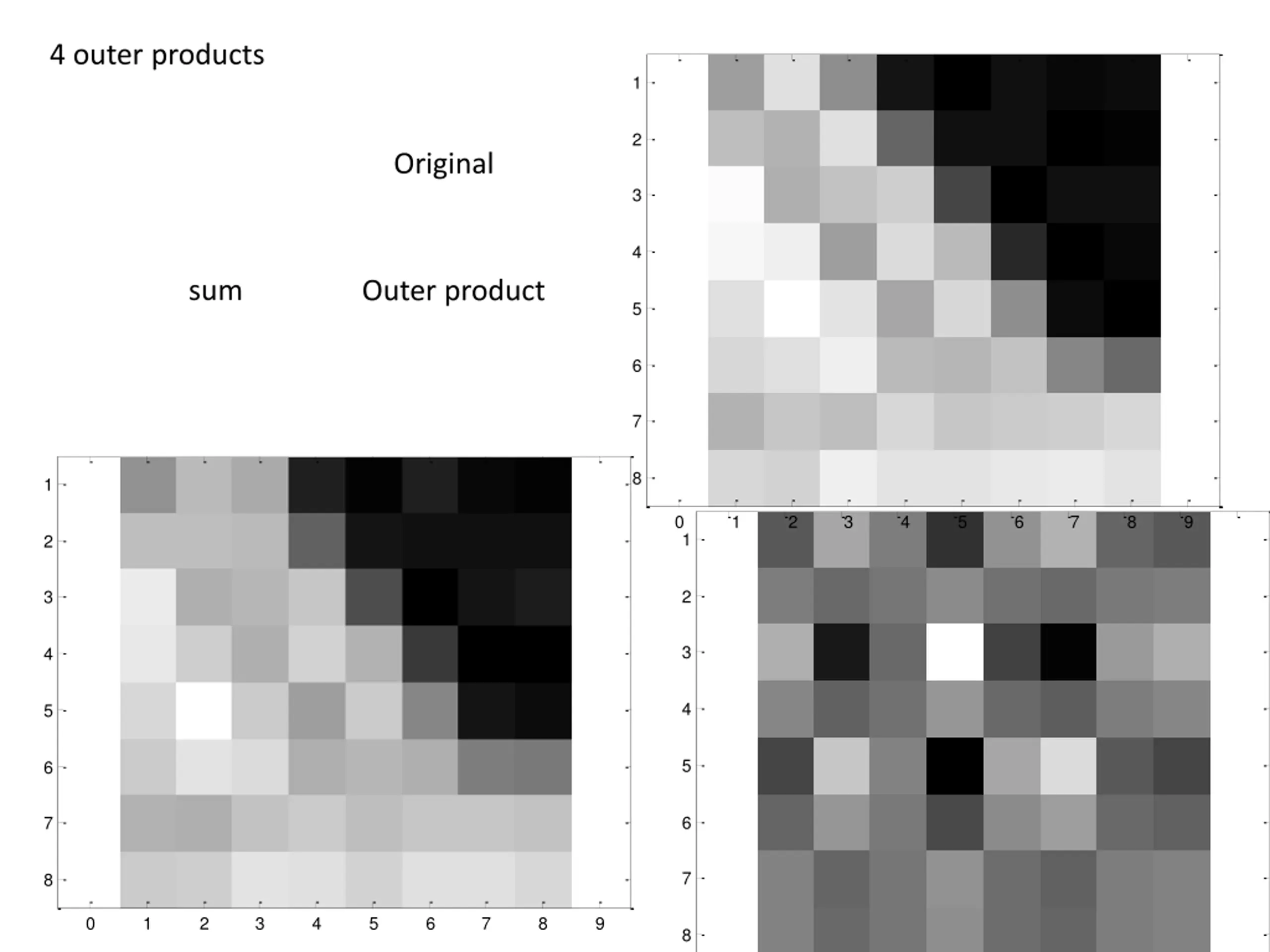 4 outer products 1 2 Original 3 4 sum Outer product 5 6 7 8 1 0 1 2 3 4 5 6 7 8 9 1 2 2 3 3 4 4 5 5 6 6 7 7 8 0 1 2 3 4 5 6 7 8 9 8 0 1 2 3 4 5 6 7 8 9