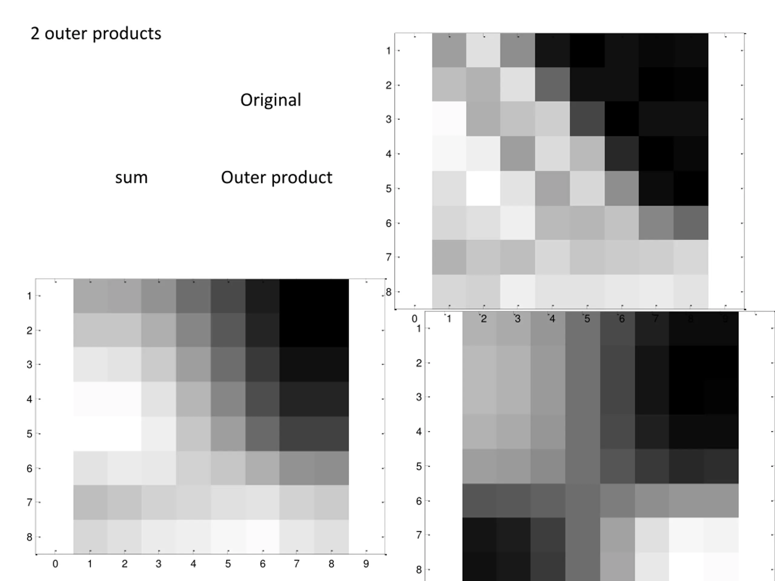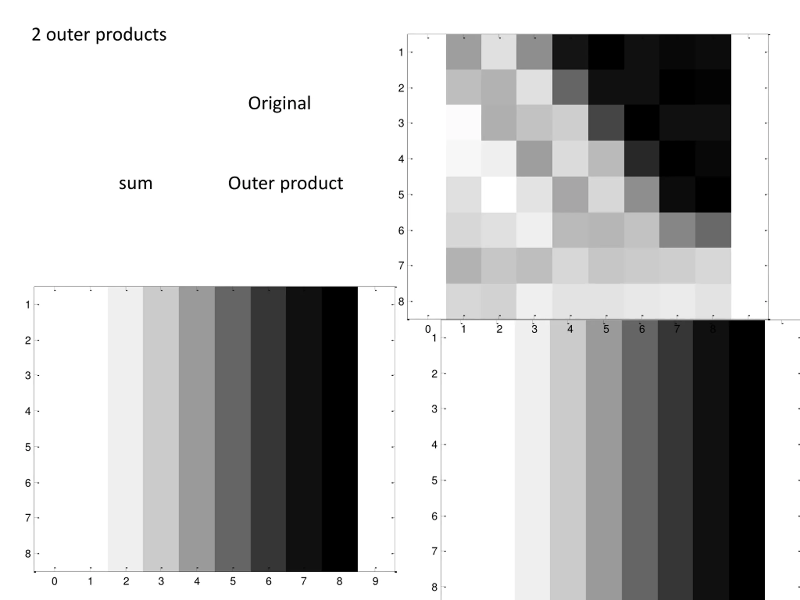2 outer products 1 2 Original 3 4 sum Outer product 5 6 7 8 1 0 1 2 3 4 5 6 7 8 9 1 2 2 3 3 4 4 5 5 6 6 7 7 8 0 1 2 3 4 5 6 7 8 9 8 0 1 2 3 4 5 6 7 8 9