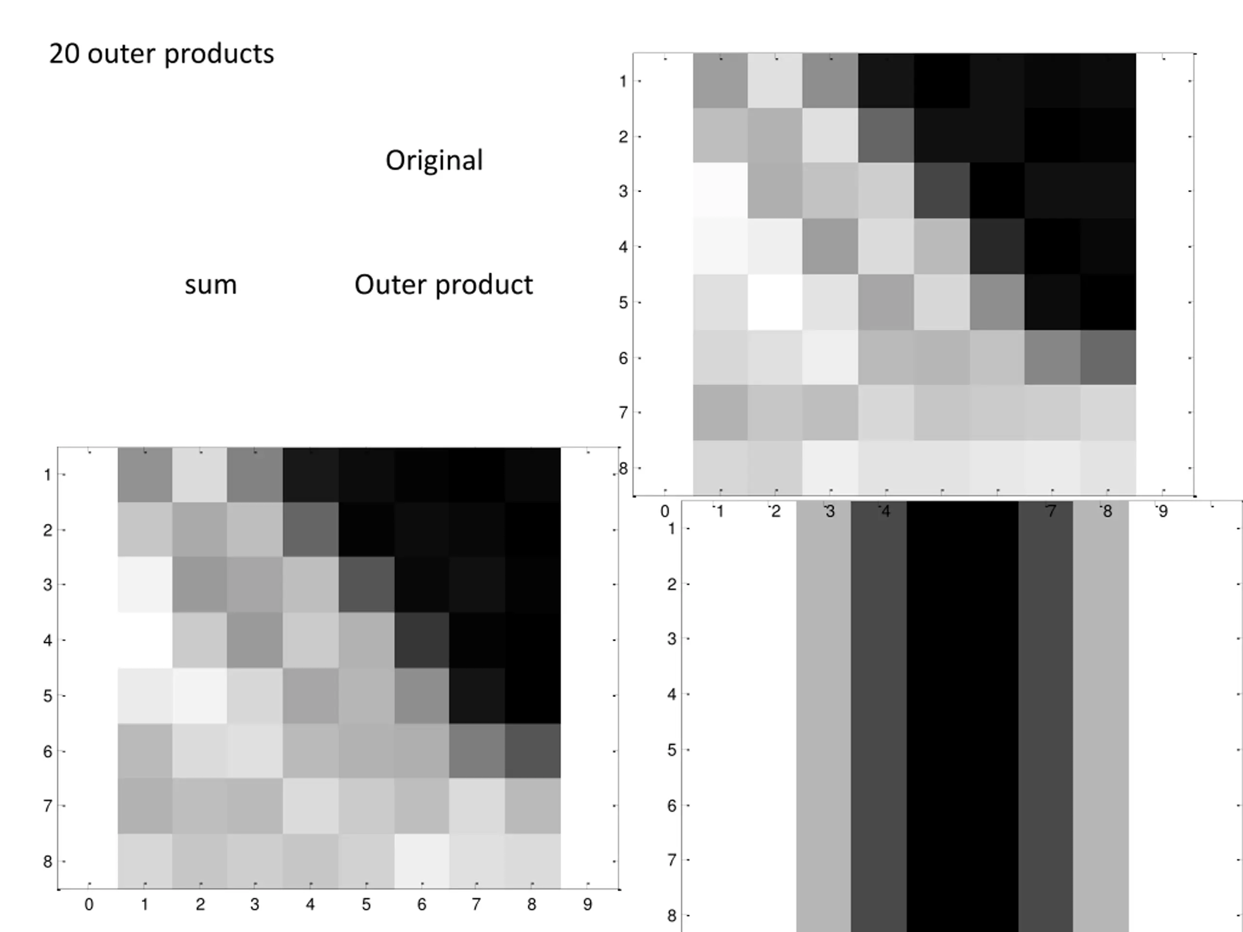 20 outer products 1 2 Original 3 4 sum Outer product 5 6 7 8 1 0 1 2 3 4 5 6 7 8 9 1 2 2 3 3 4 4 5 5 6 6 7 7 8 0 1 2 3 4 5 6 7 8 9 8 0 1 2 3 4 5 6 7 8 9