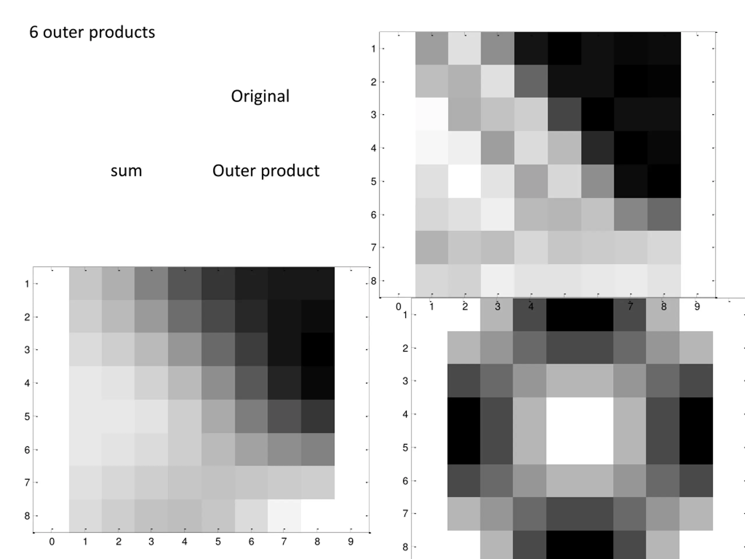 5 outer products 1 2 Original 3 4 sum Outer product 5 6 7 8 1 0 1 2 3 4 5 6 7 8 9 1 2 2 3 3 4 4 5 5 6 6 7 7 8 0 1 2 3 4 5 6 7 8 9 8 0 1 2 3 4 5 6 7 8 9