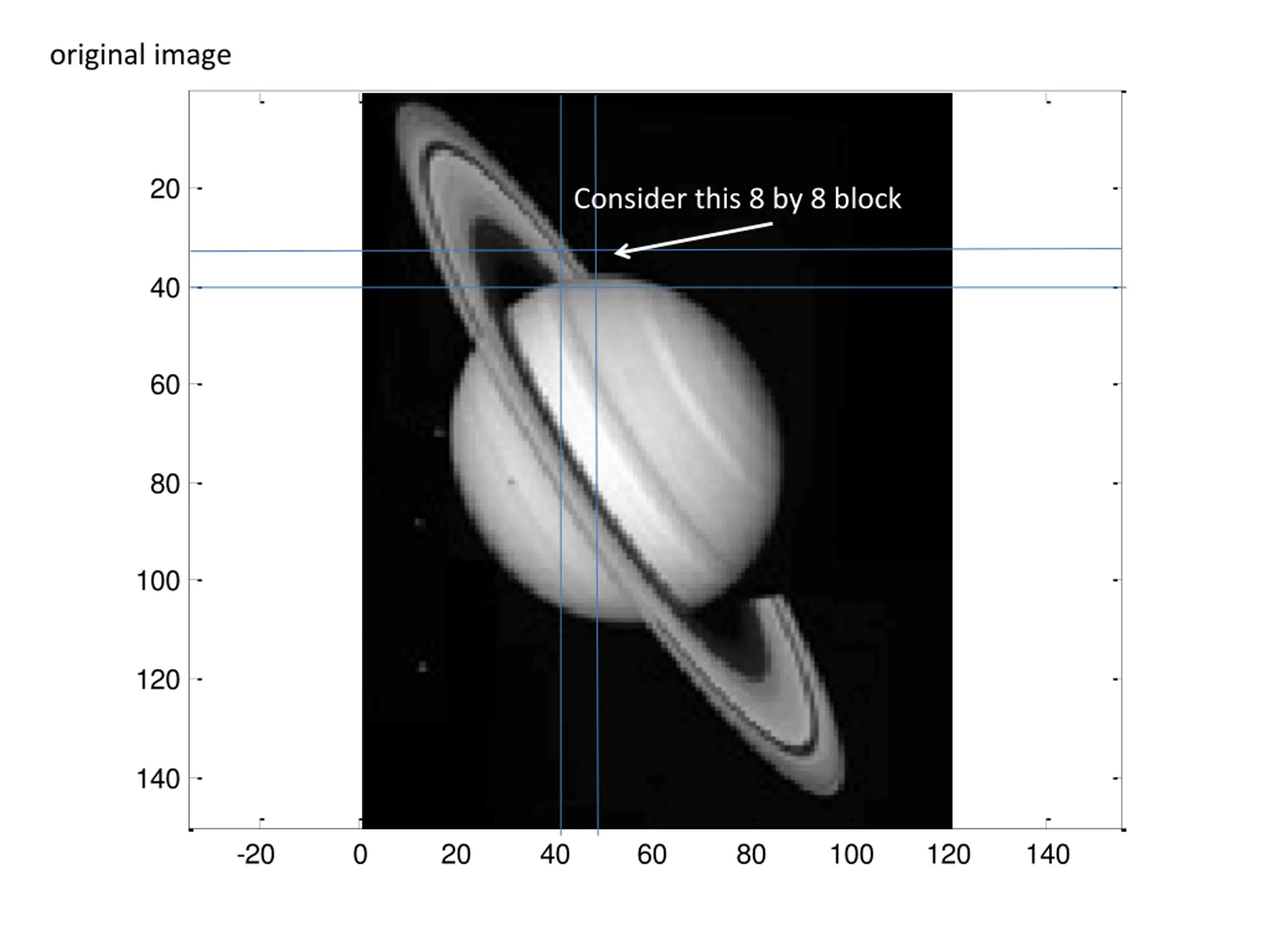 original image 20 Consider this 8 by 8 block 40 60 80 100 120 140 -20 0 20 40 60 80 100 120 140