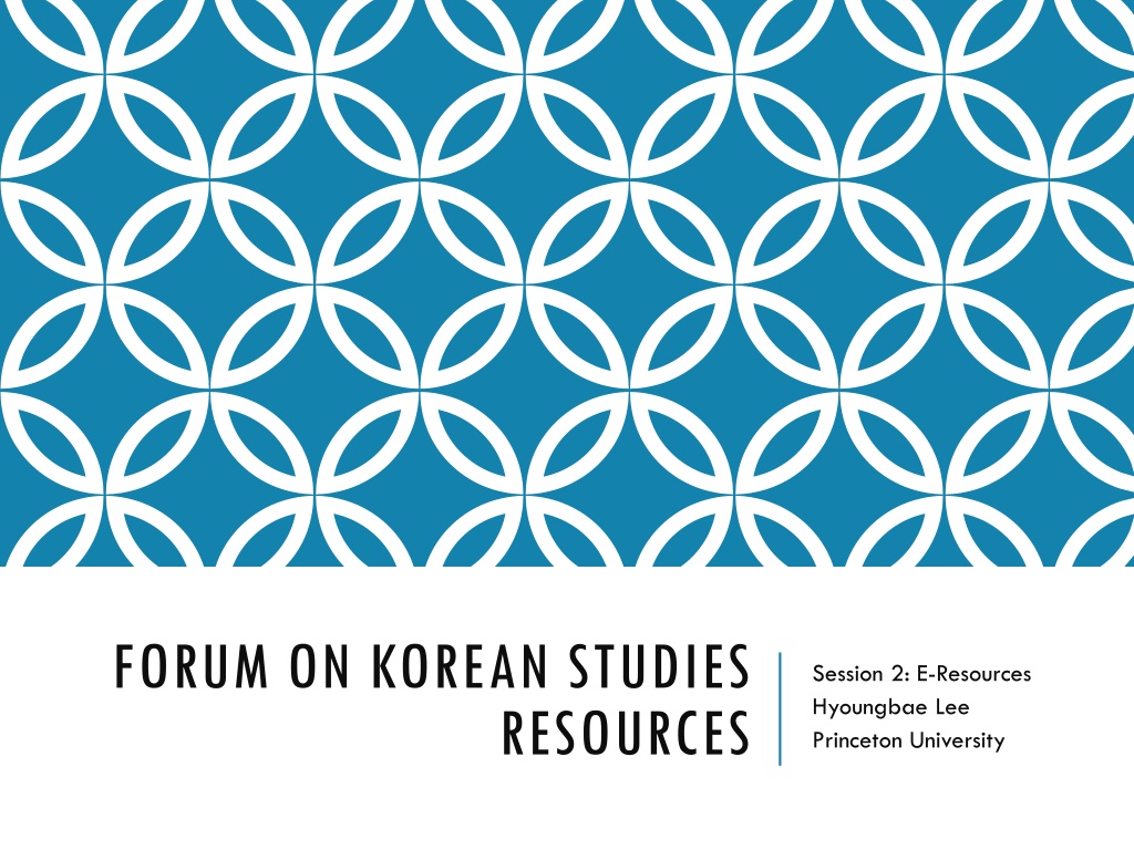 FORUM ON KOREAN STUDIES Session 2: E-Resources Hyoungbae Lee Princeton University RESOURCES