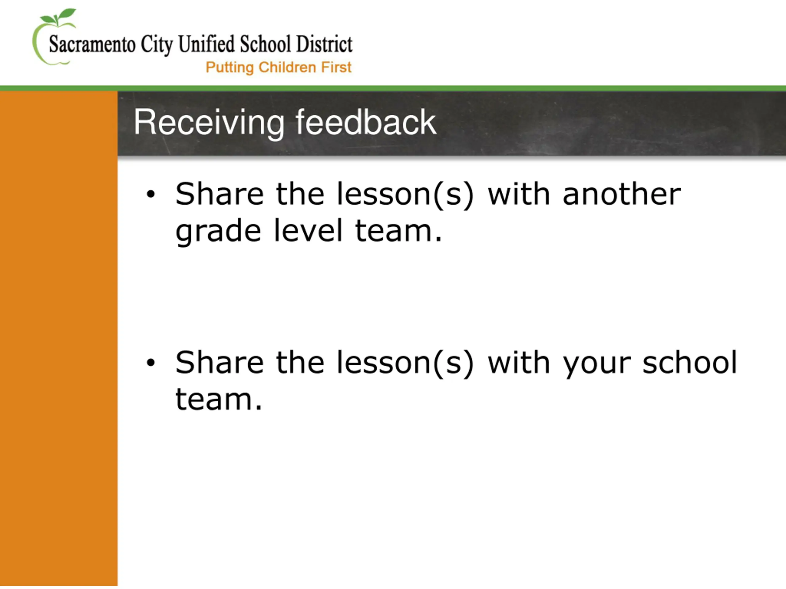 Receiving feedback Share the lesson(s) with another grade level team. Share the lesson(s) with your school team.