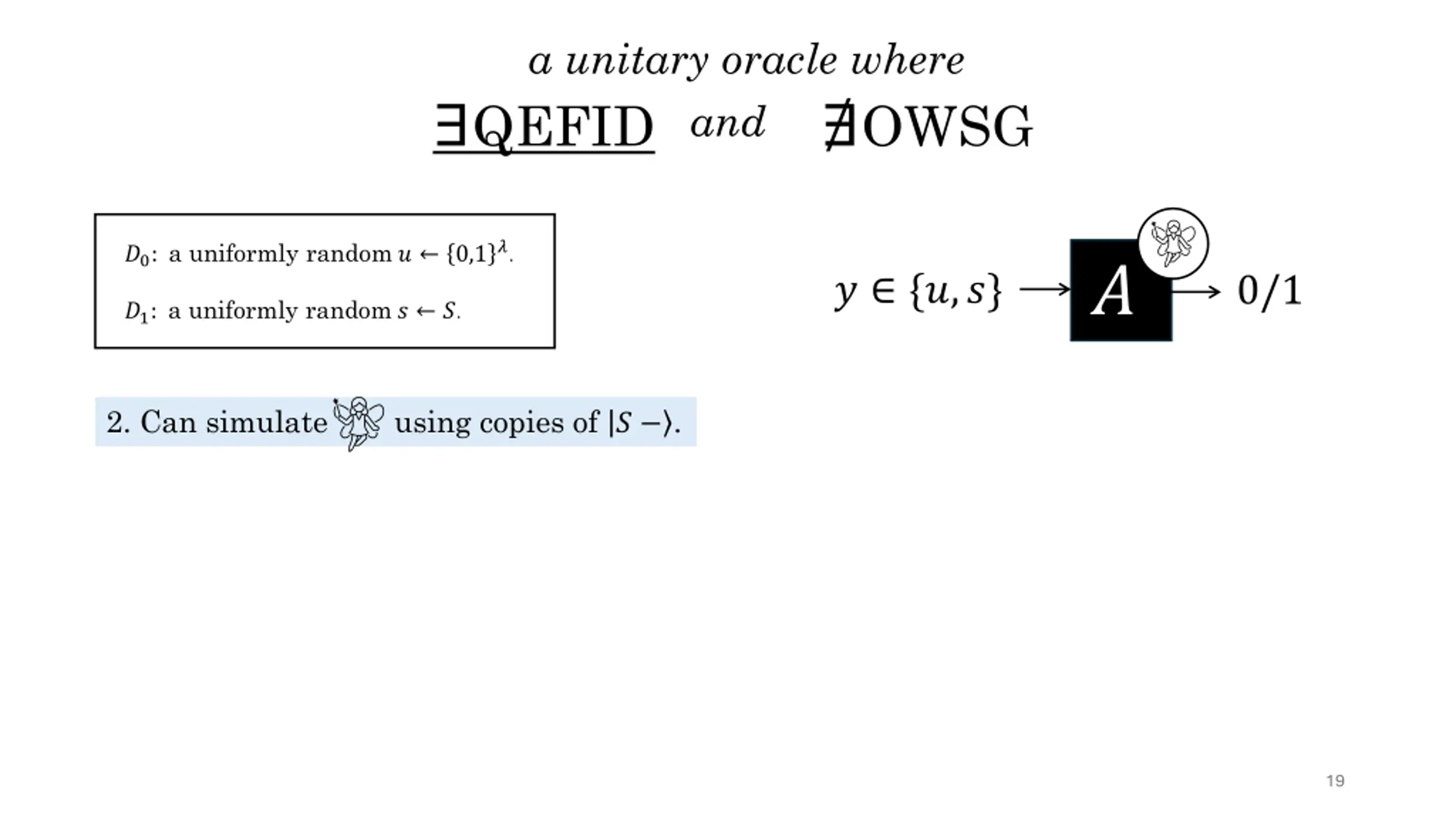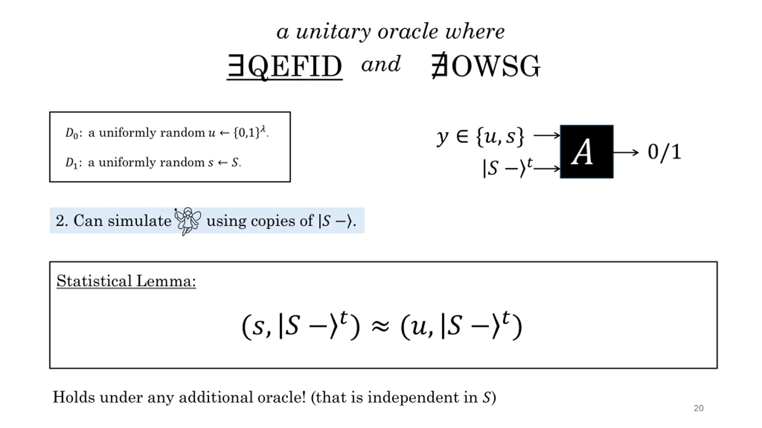 a unitary oracle where QEFID and OWSG ?0:a uniformly random? 0,1?. ? ? {?,?} 0/1 ?1:a uniformly random? ?. 2. Can simulate using copies of ? . 19