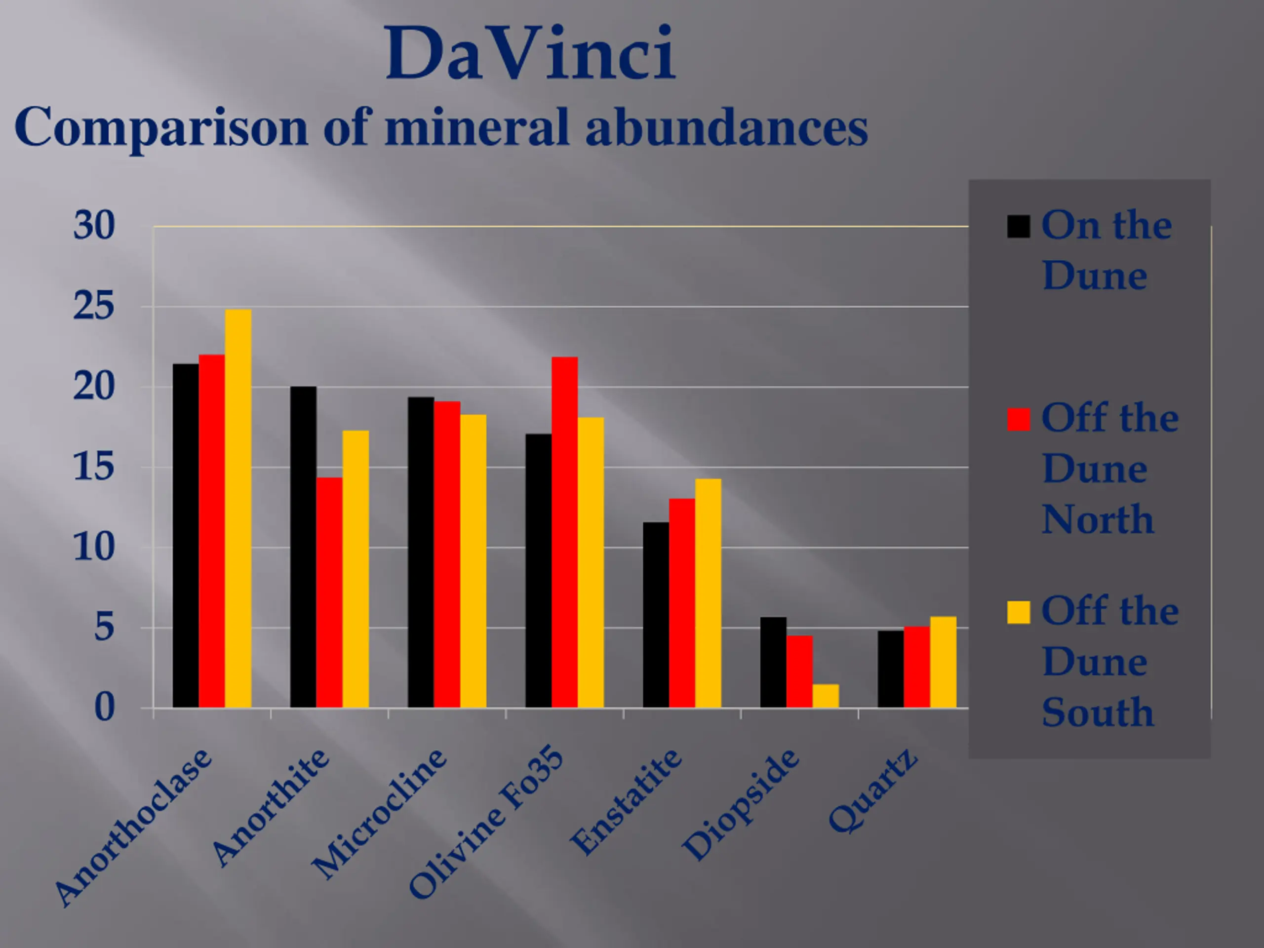 DaVinci Comparison of mineral abundances 30 On the Dune 25 20 Off the Dune North 15 10 Off the Dune South 5 0