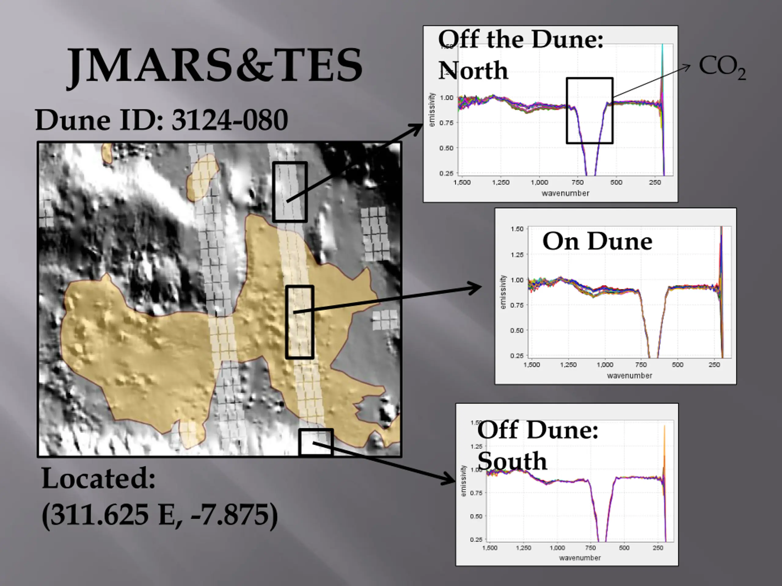 Off the Dune: North JMARS&TES Dune ID: 3124-080 CO2 On Dune Off Dune: South Located: (311.625 E, -7.875)