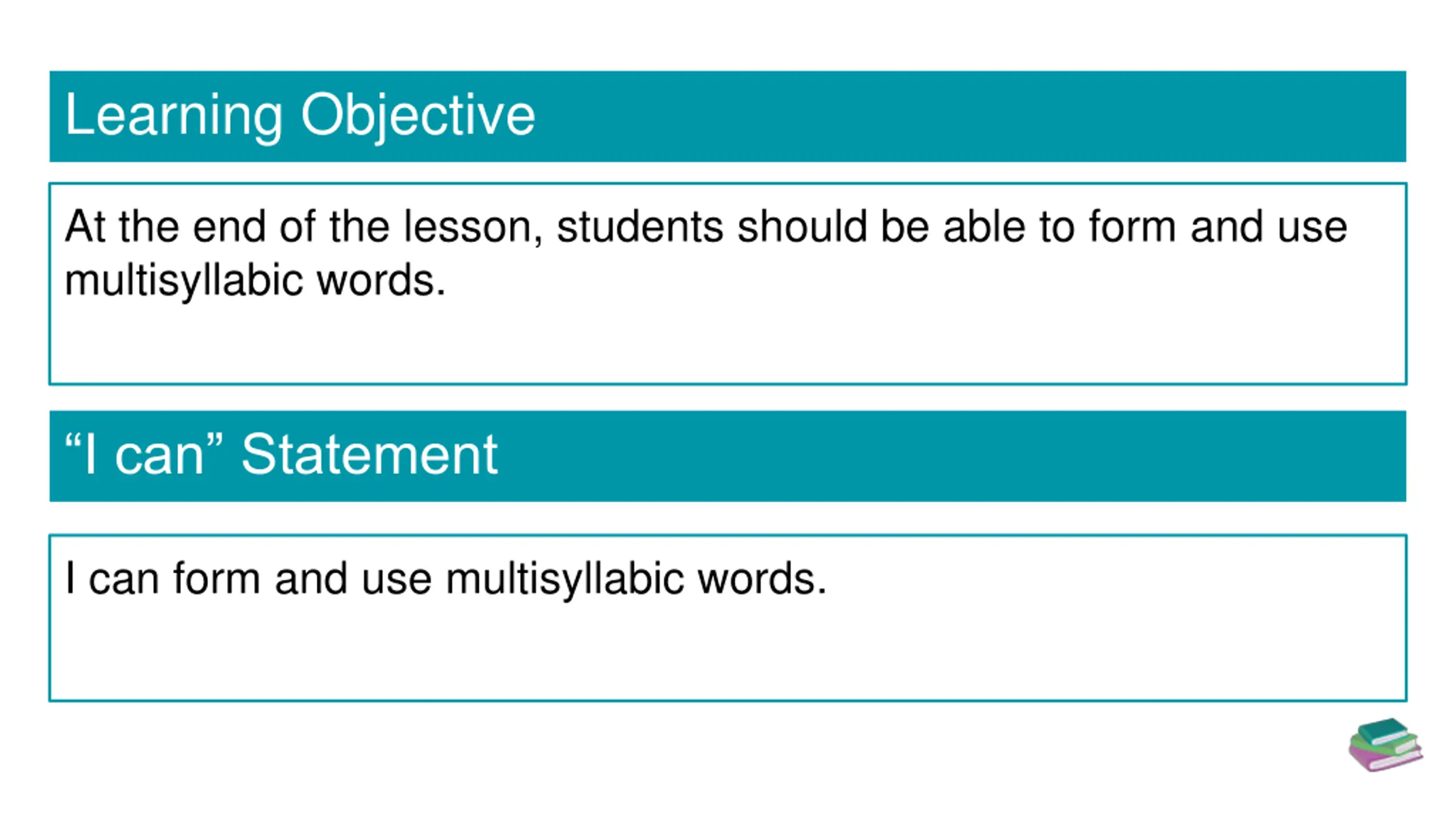Learning Objective At the end of the lesson, students should be able to form and use multisyllabic words. I can Statement I can form and use multisyllabic words.