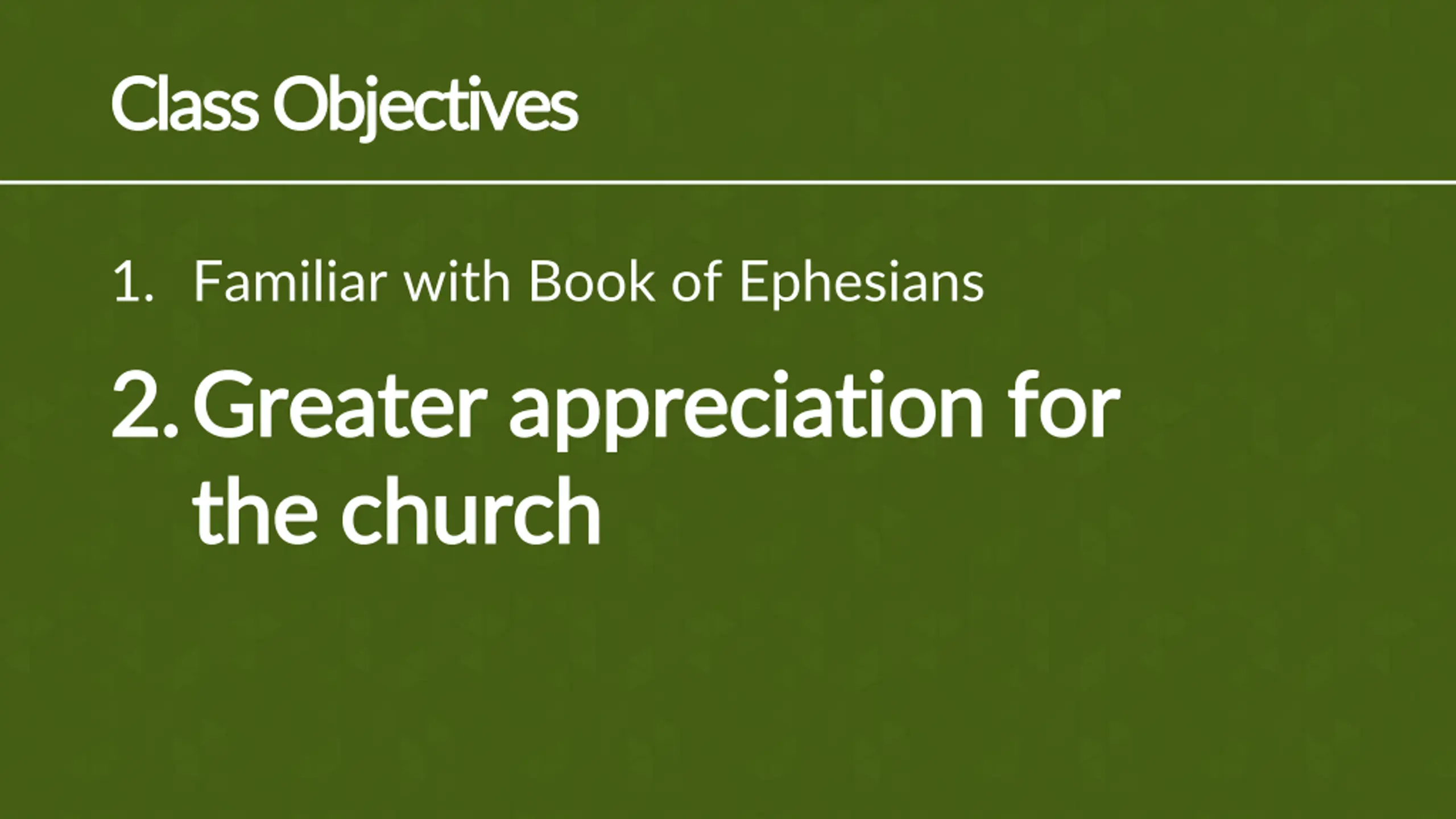Class Objectives Class Objectives 1. Familiar with Book of Ephesians 2. Greater appreciation for the church 3. 3.Greater Greater ability to see ability to see