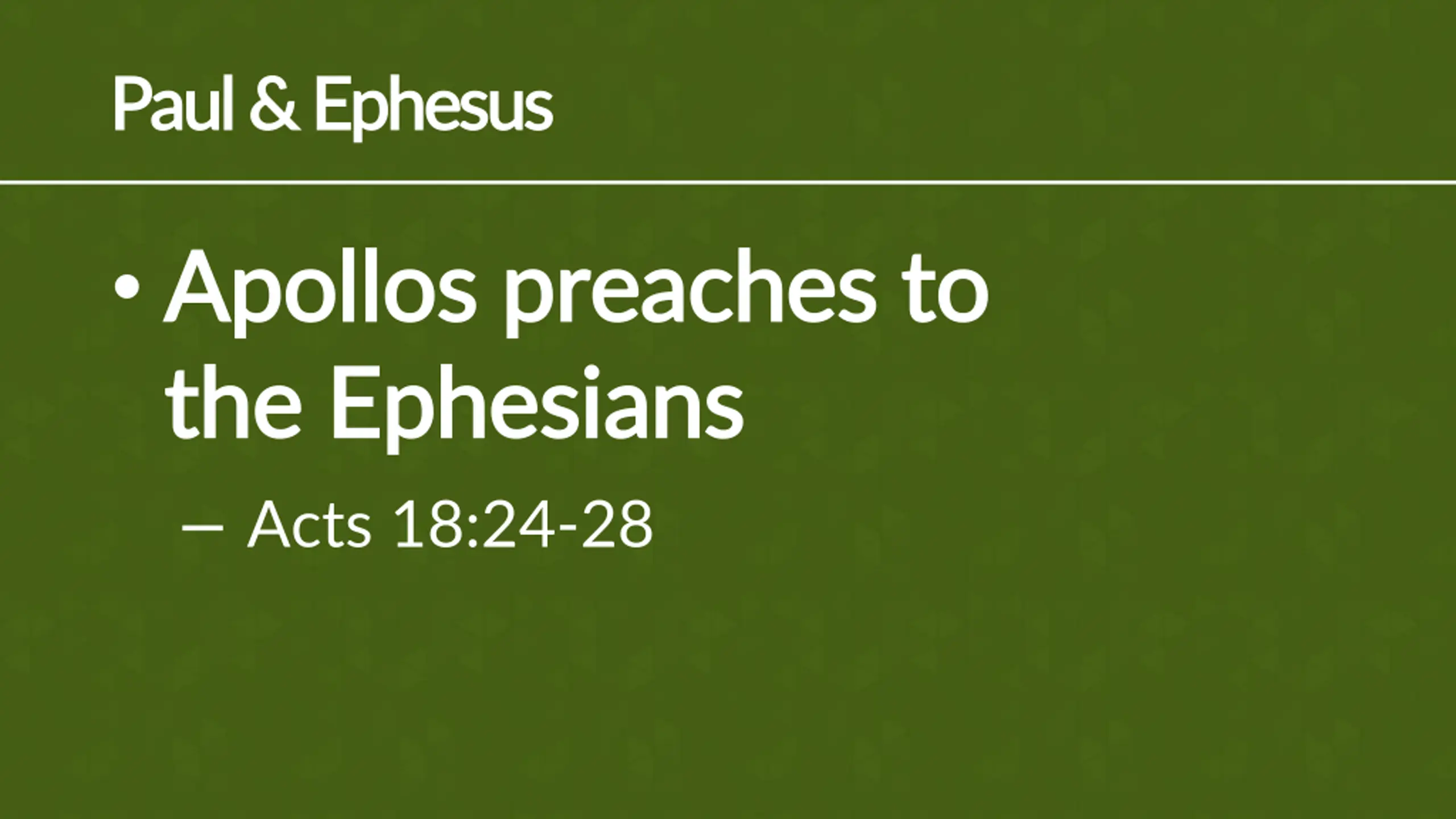 Paul & Ephesus Paul & Ephesus Apollos preaches Apollos preaches to the the Ephesians Ephesians Acts 18:24-28 to