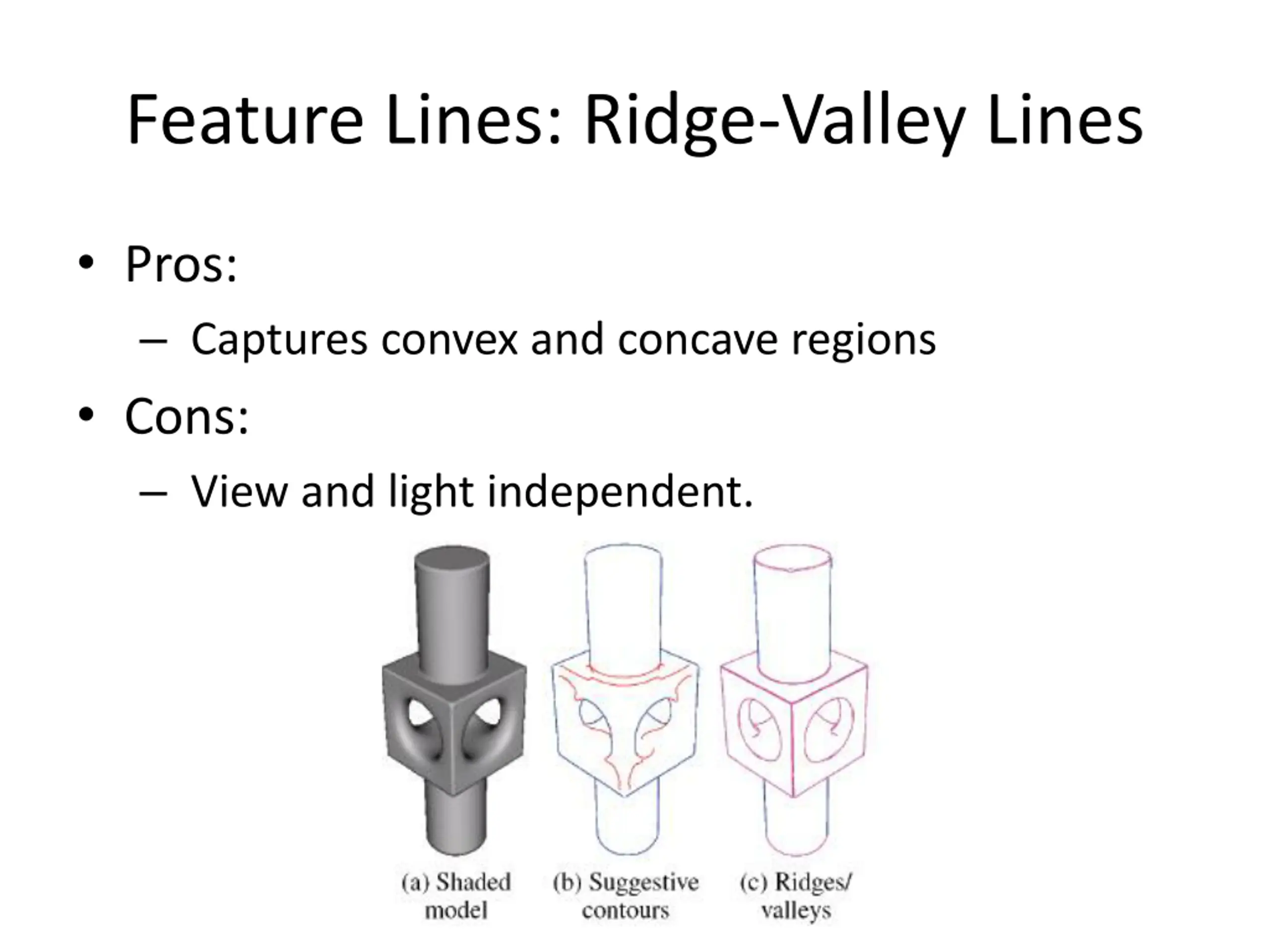Feature Lines: Ridge-Valley Lines Pros: Captures convex and concave regions Cons: View and light independent.