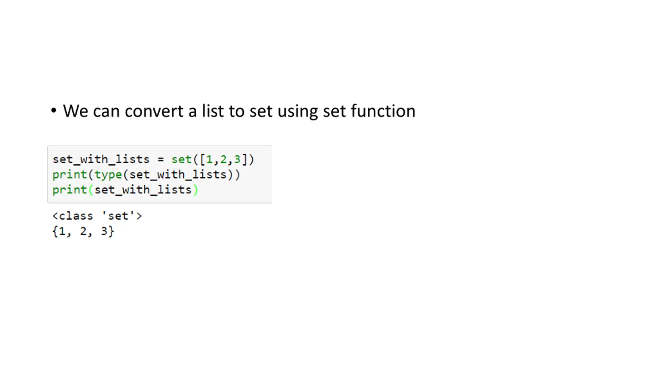 Python Sets A set is an unordered collection of items. Every element is unique and must be immutable. Python sets are mutable; you can add and remove items from it. Sets can be used to perform mathematical set operations like: Union : Intersection symmetric difference etc.