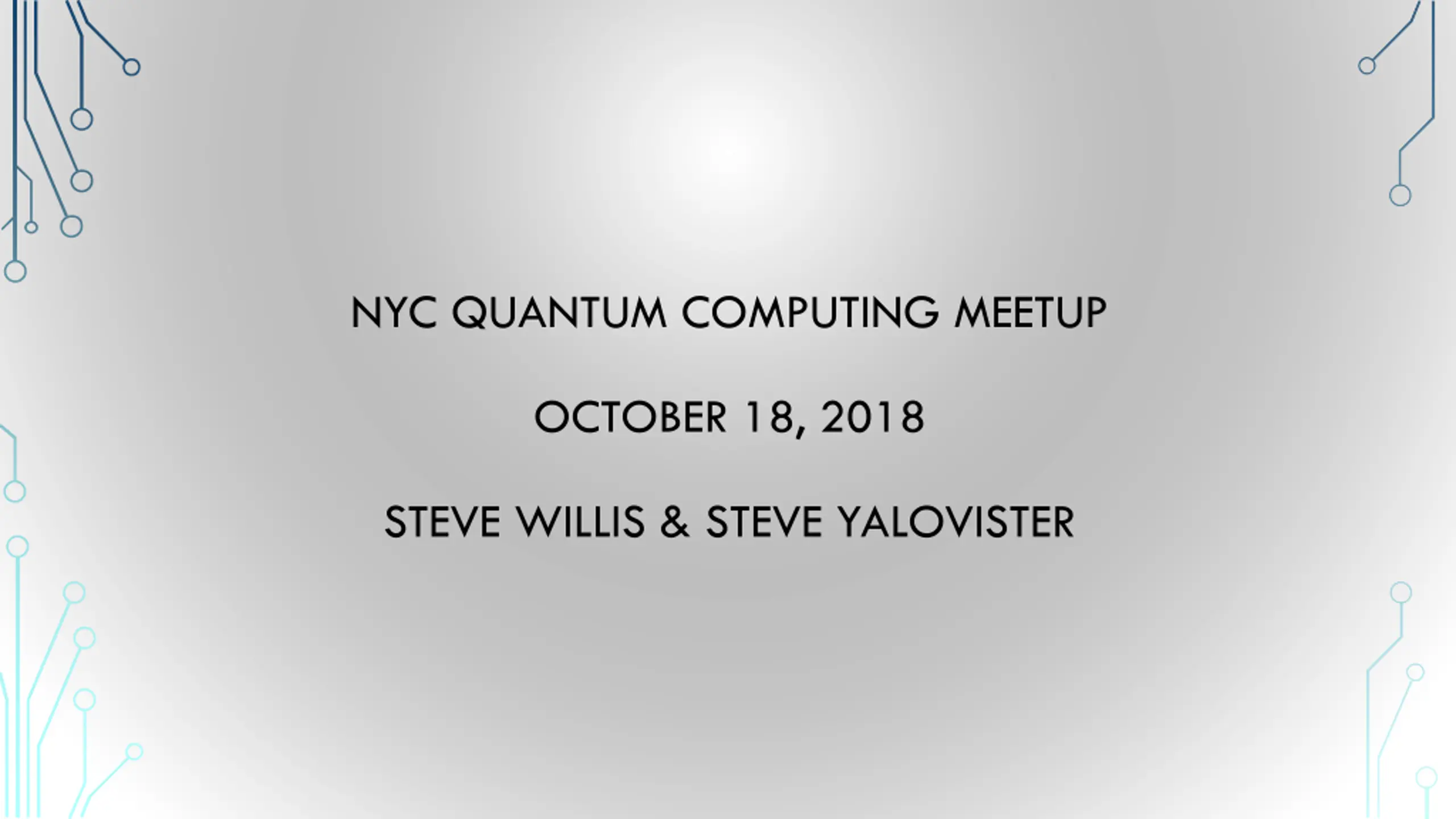 NYC QUANTUM COMPUTING MEETUP OCTOBER 18, 2018 STEVE WILLIS & STEVE YALOVISTER
