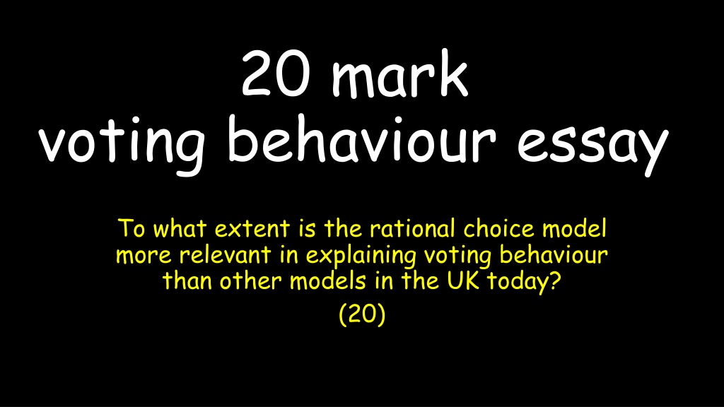 20 mark voting behaviour essay To what extent is the rational choice model more relevant in explaining voting behaviour than other models in the UK today? (20)