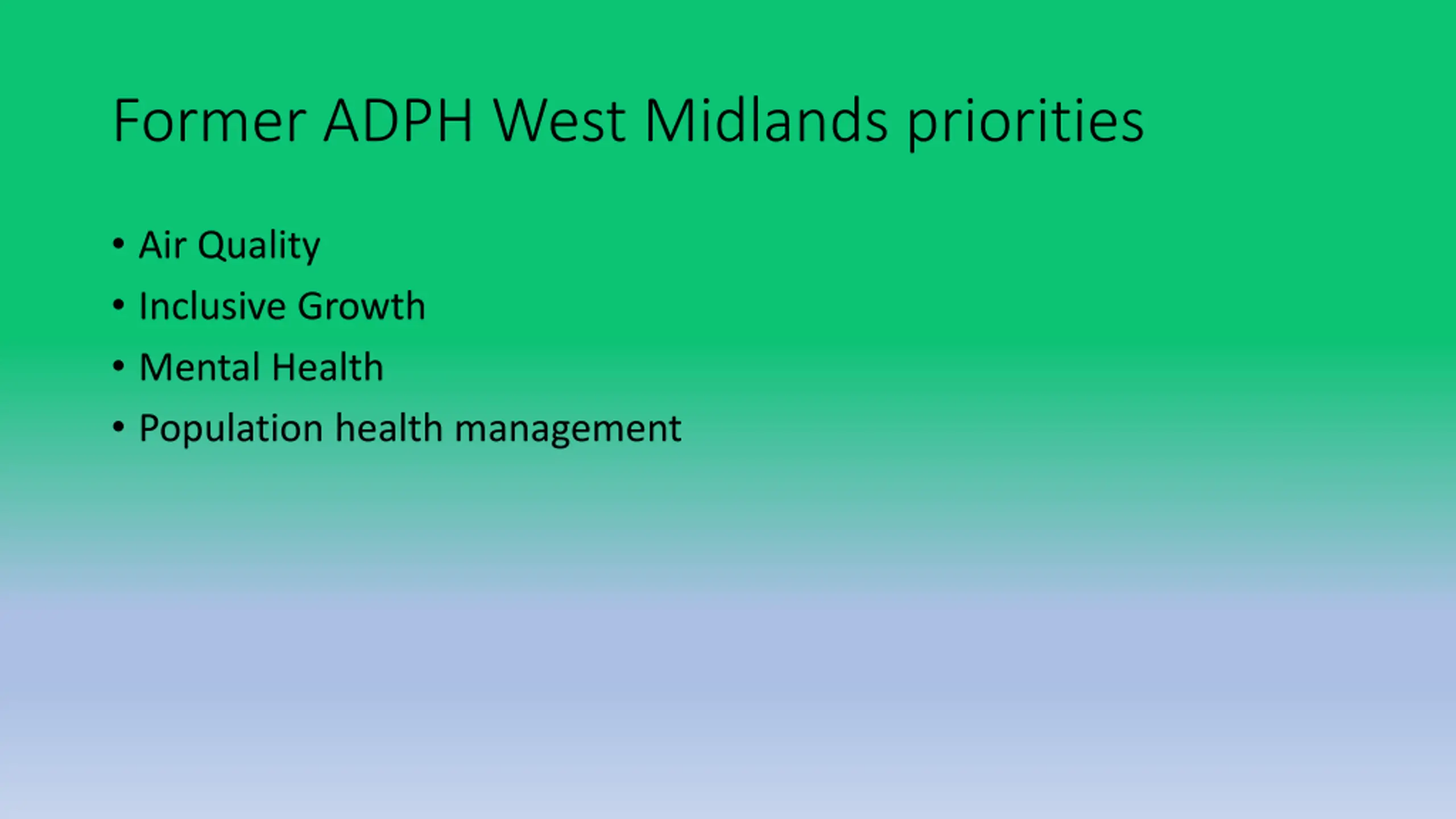 Former ADPH West Midlands priorities Air Quality Inclusive Growth Mental Health Population health management