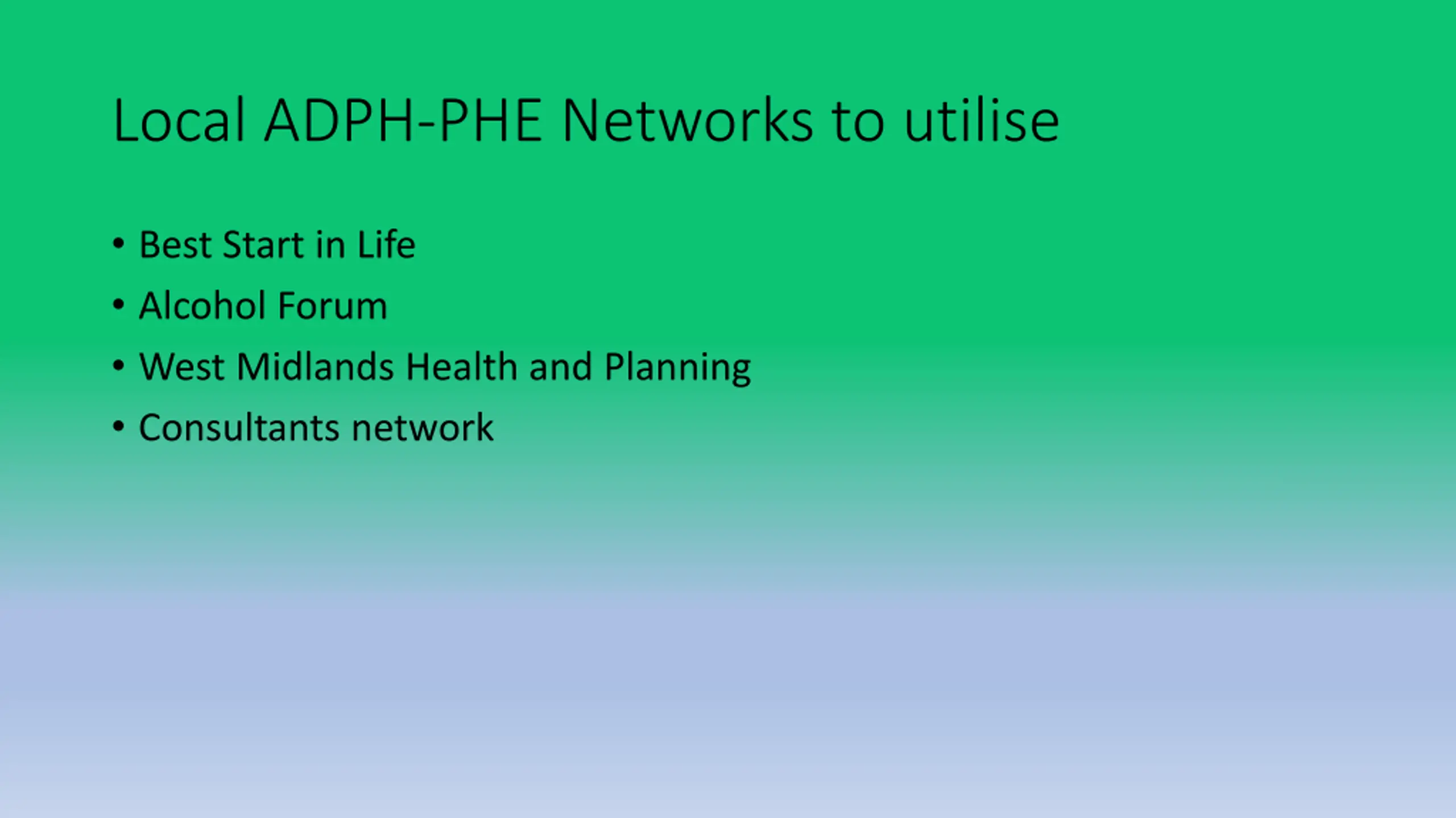 Local ADPH-PHE Networks to utilise Best Start in Life Alcohol Forum West Midlands Health and Planning Consultants network