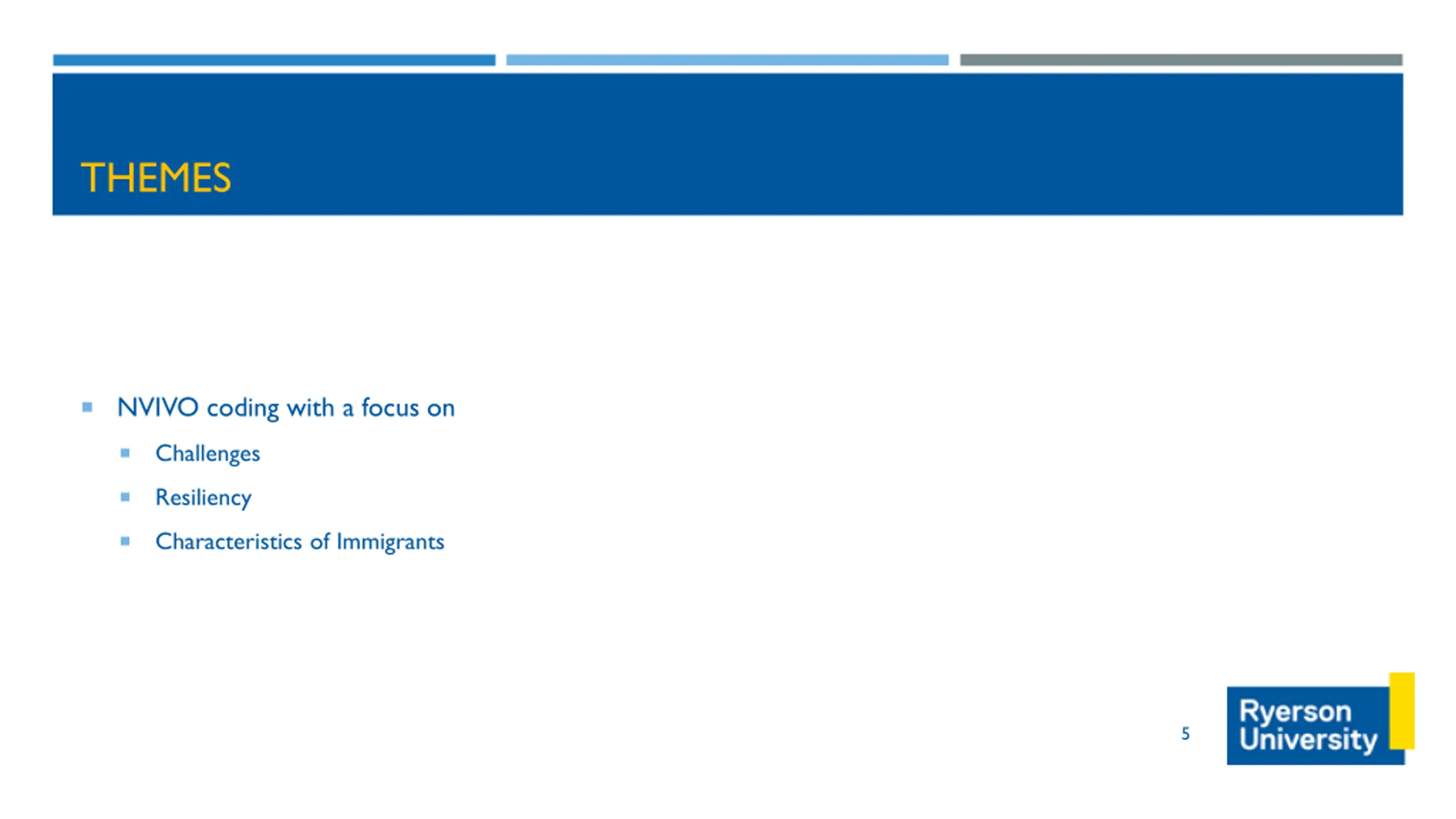 THEMES NVIVO coding with a focus on Challenges Resiliency Characteristics of Immigrants 5