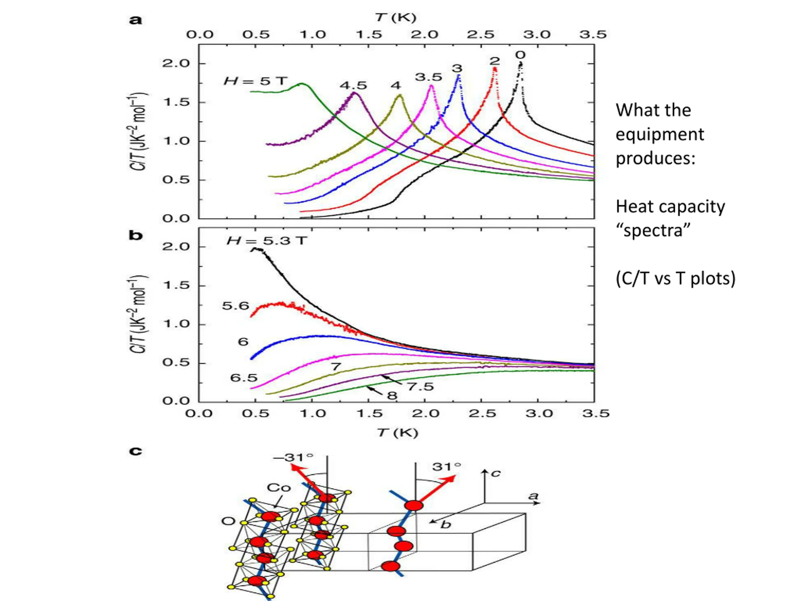http://www.nature.com/ncomms/2015/150706/ncomms8611/images_article/ncomms8611-f1.jpghttp://www.nature.com/ncomms/2015/150706/ncomms8611/images_article/ncomms8611-f1.jpg What the equipment produces: Heat capacity spectra (C/T vs T plots)