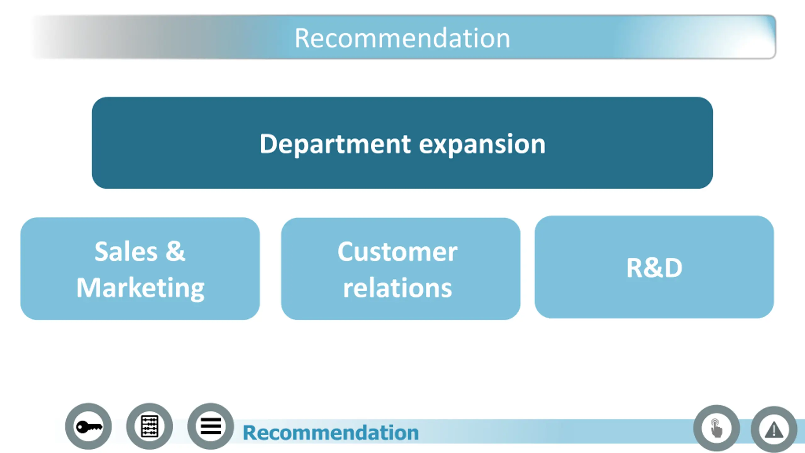 Recommendation Department expansion Sales & Marketing Customer relations R&D Recommendation