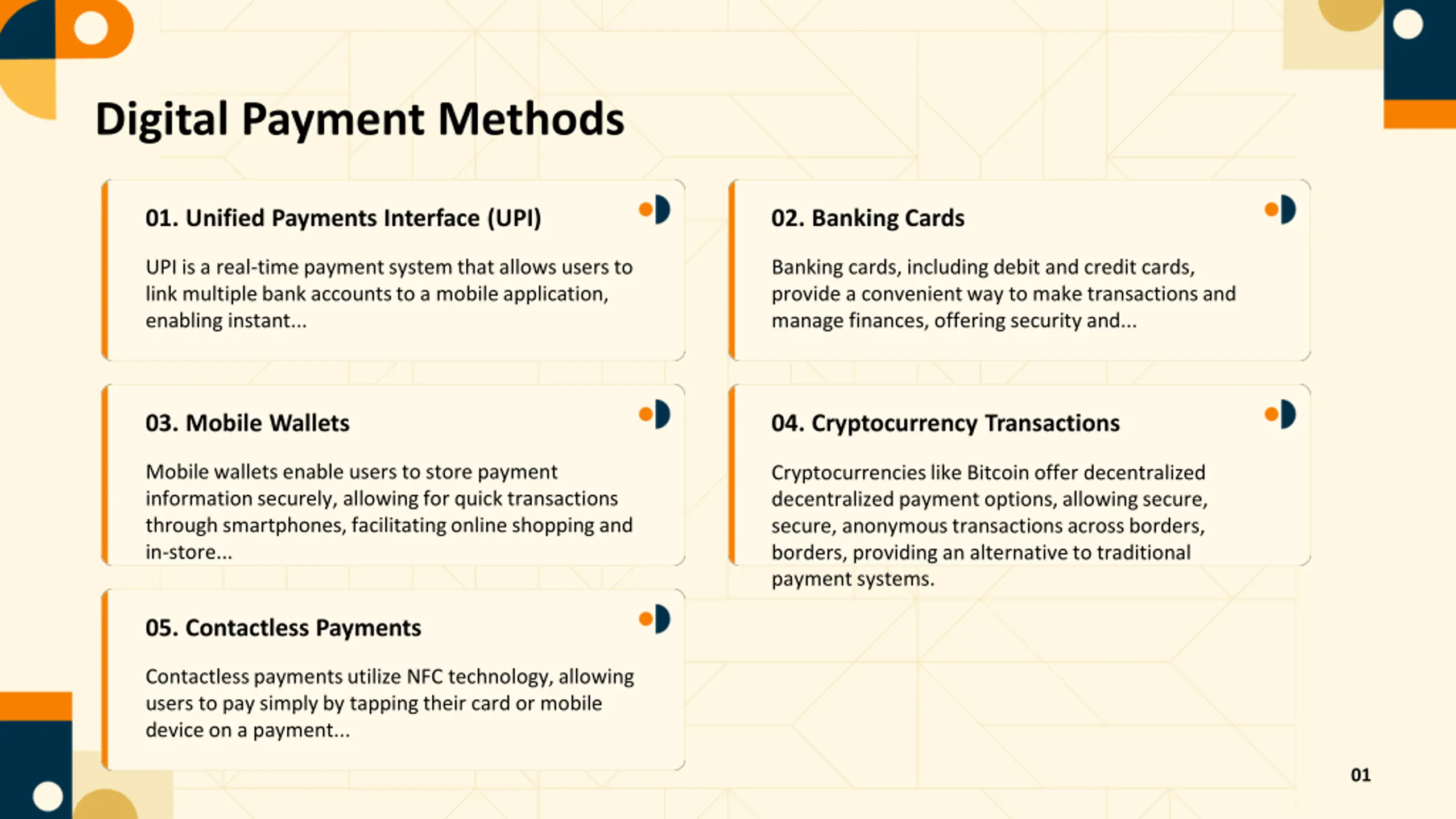 "Discover the diverse methods transforming financial transactions in India, from cashless options to the government's role in promoting digital transactions. Explore innovative solutions, challenges, and future trends shaping the digital payment landscape."