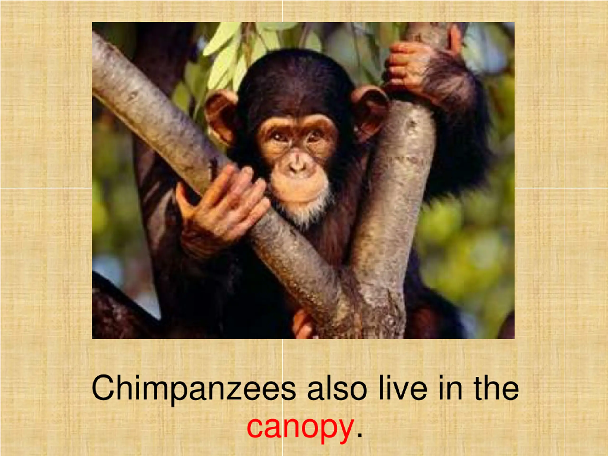 Chimpanzees also live in the canopy.