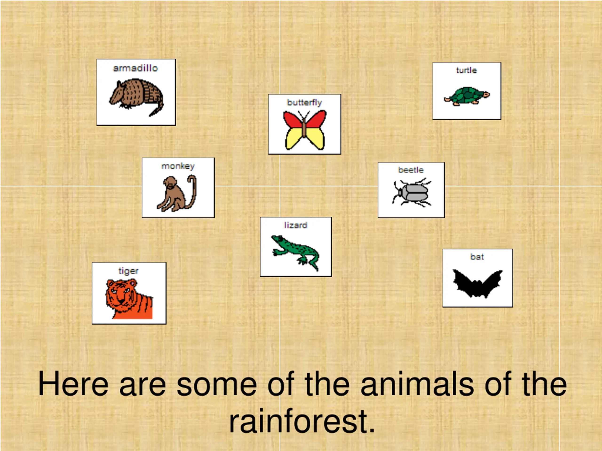 Here are some of the animals of the rainforest.