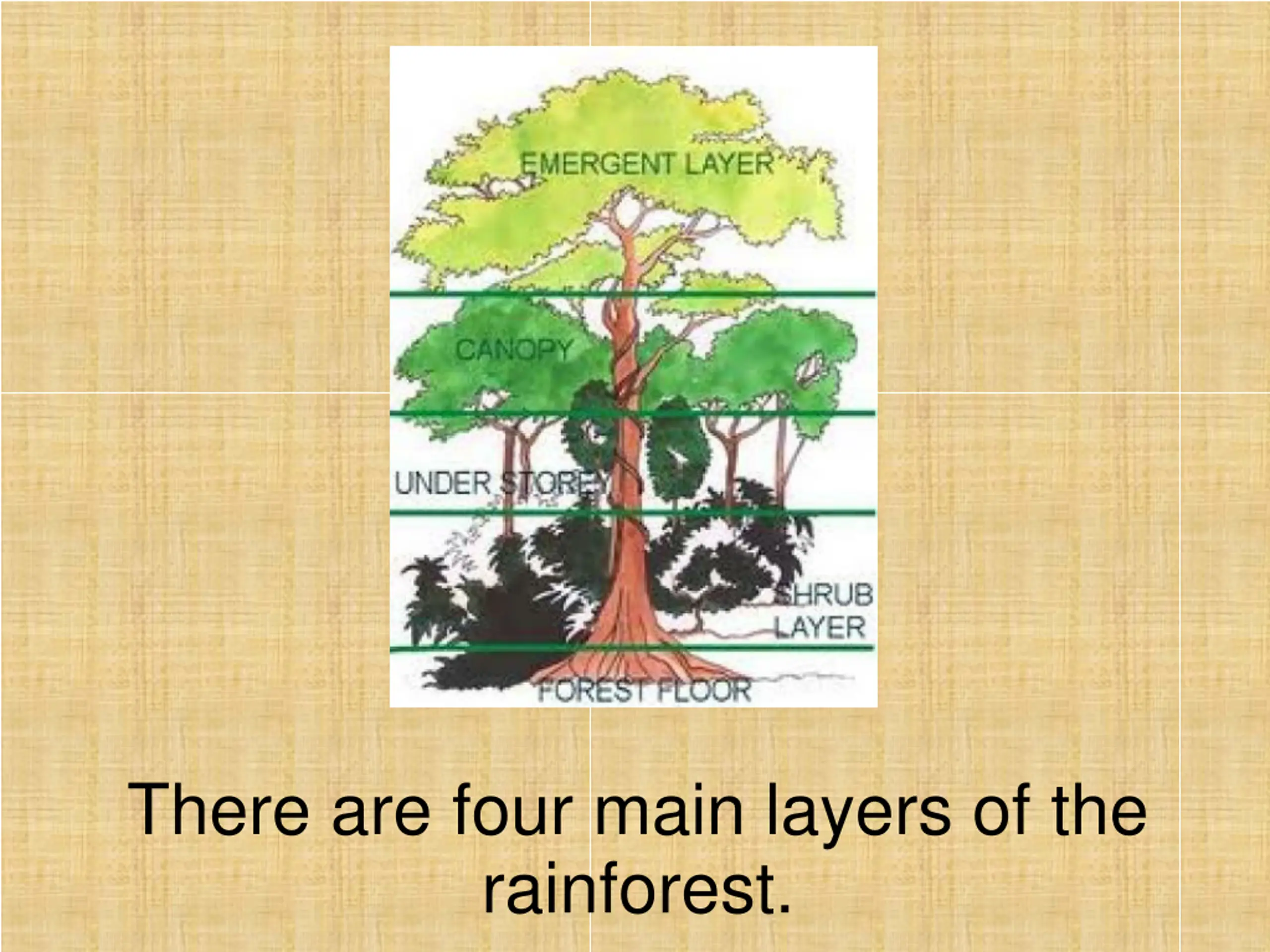 There are four main layers of the rainforest.