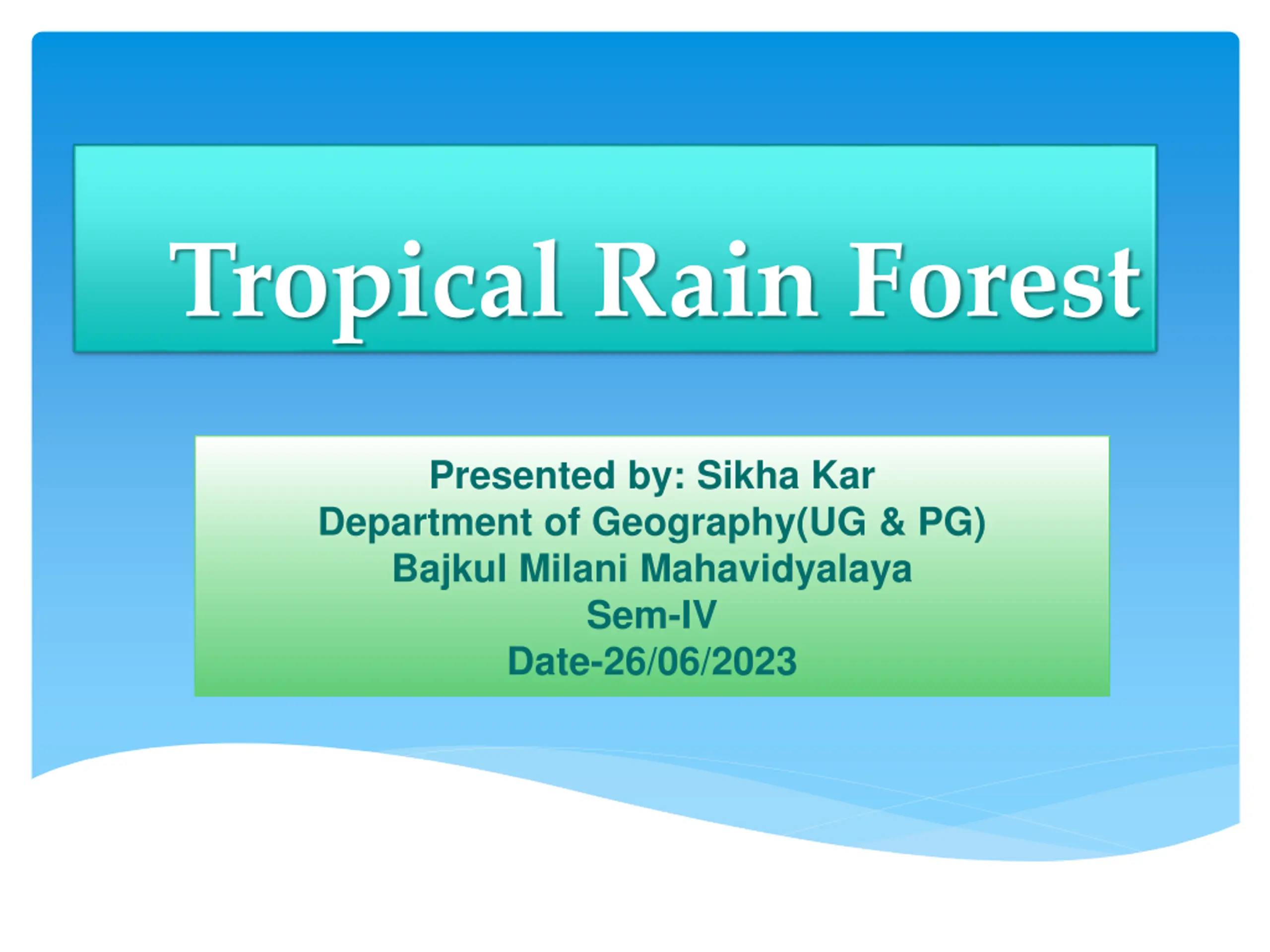 Tropical Rain Forest Presented by: Sikha Kar Department of Geography(UG & PG) Bajkul Milani Mahavidyalaya Sem-IV Date-26/06/2023