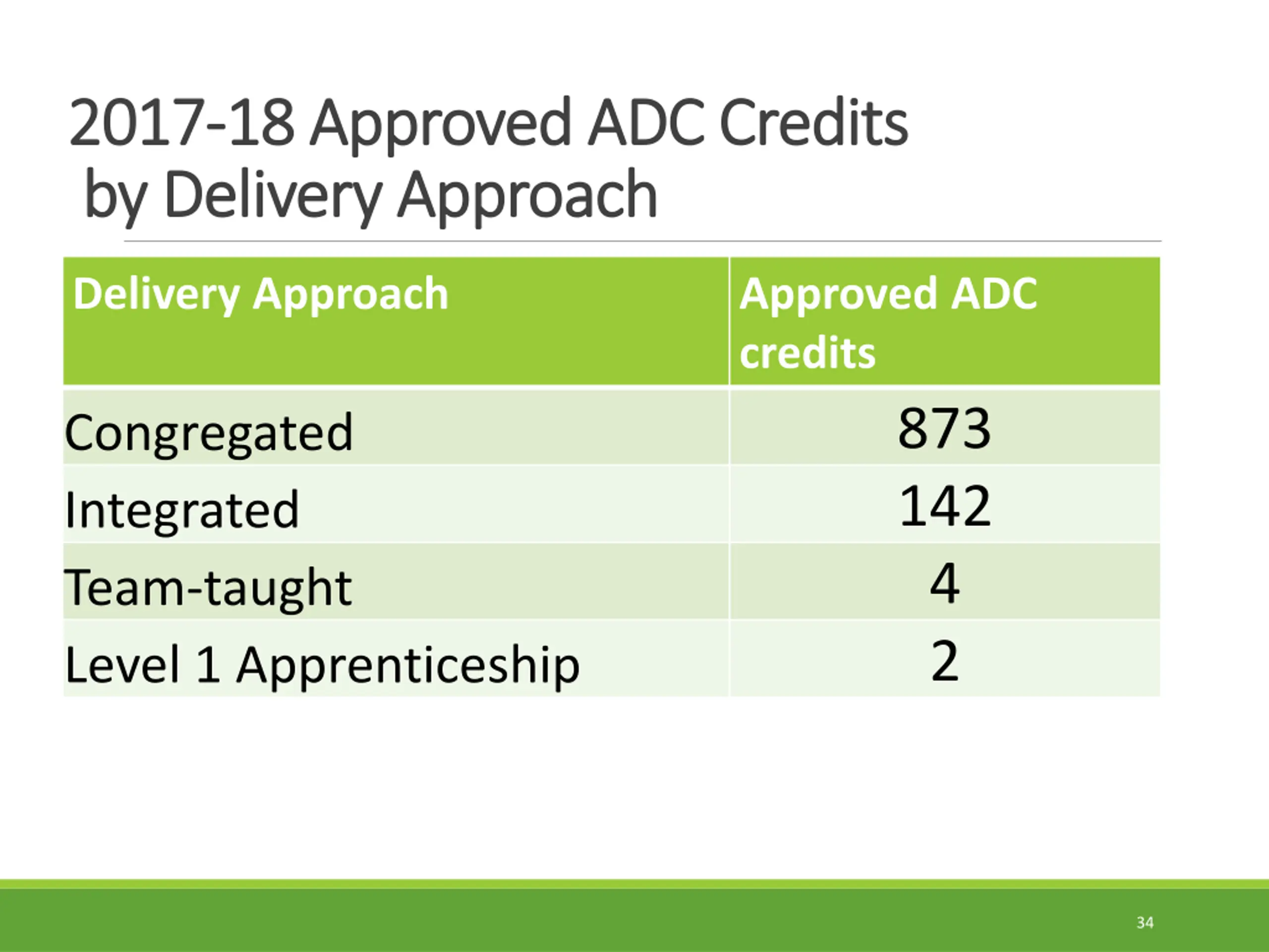 2017 2017- -18 Approved ADC Credits 18 Approved ADC Credits by Delivery Approach by Delivery Approach Delivery Approach Approved ADC credits 873 142 4 2 Congregated Integrated Team-taught Level 1 Apprenticeship 34