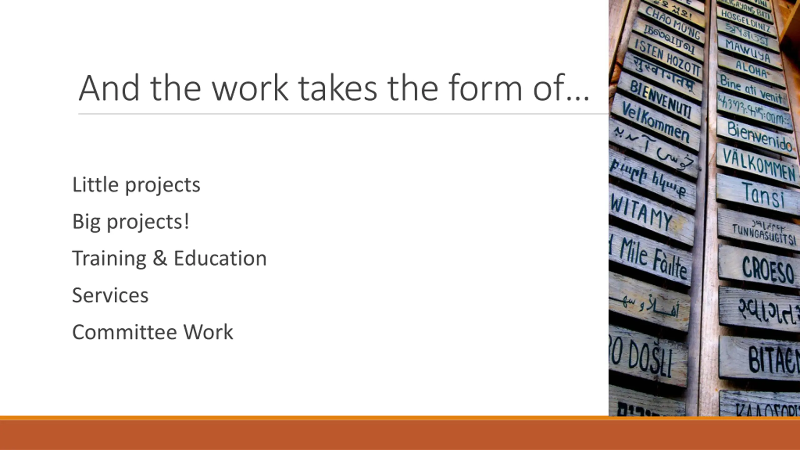 And the work takes the form of Little projects Big projects! Training & Education Services Committee Work