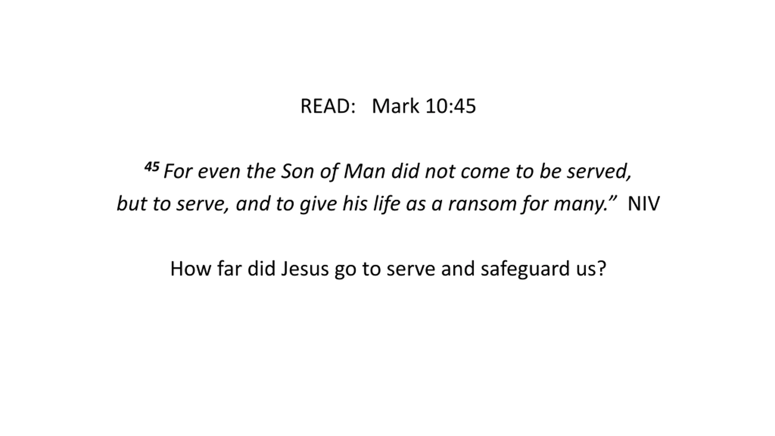 READ: Mark 10:45 45For even the Son of Man did not come to be served, but to serve, and to give his life as a ransom for many. NIV How far did Jesus go to serve and safeguard us?