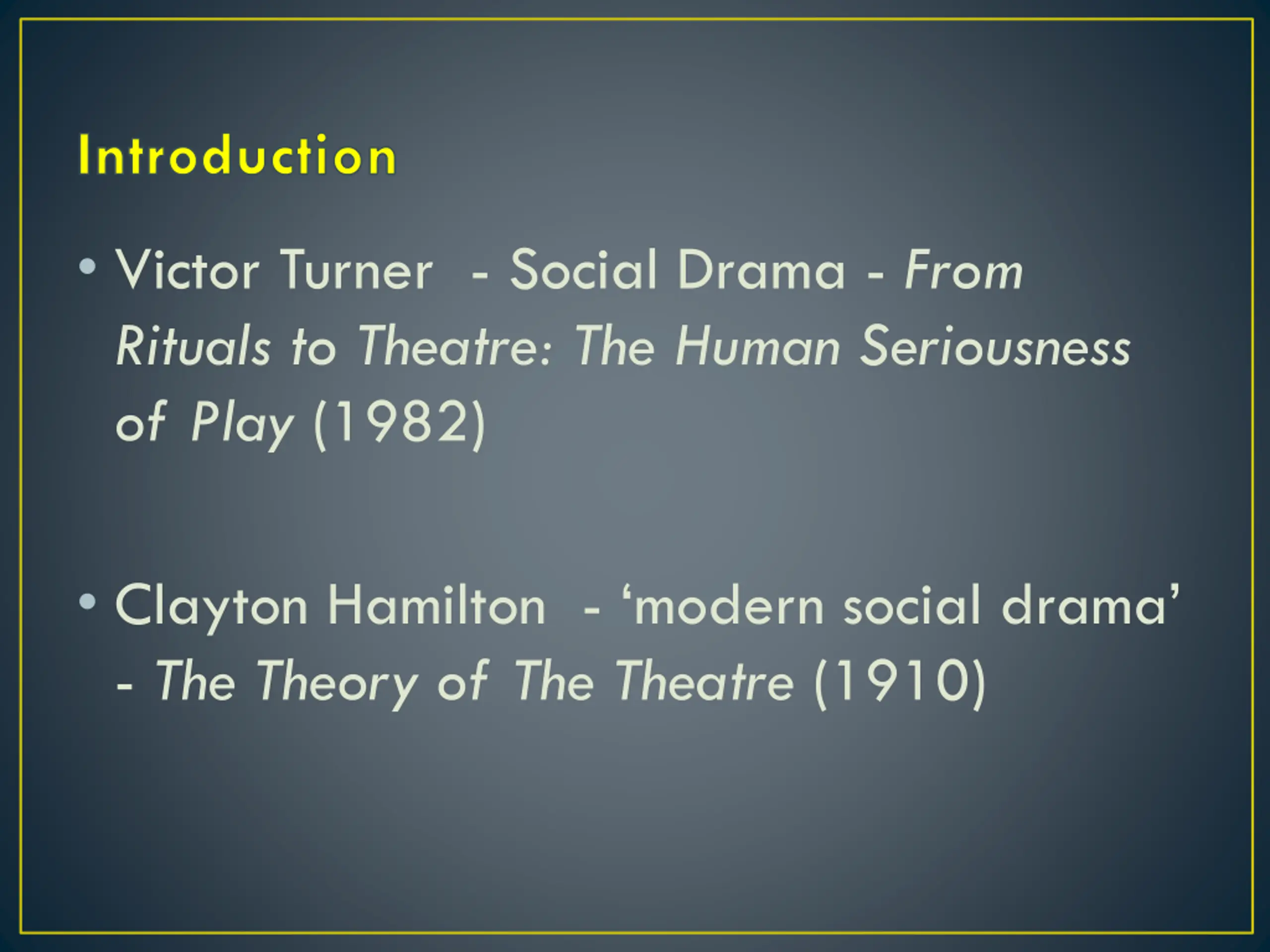 Introduction Victor Turner - Social Drama - From Rituals to Theatre: The Human Seriousness of Play (1982) Clayton Hamilton - modern social drama - The Theory of The Theatre (1910)