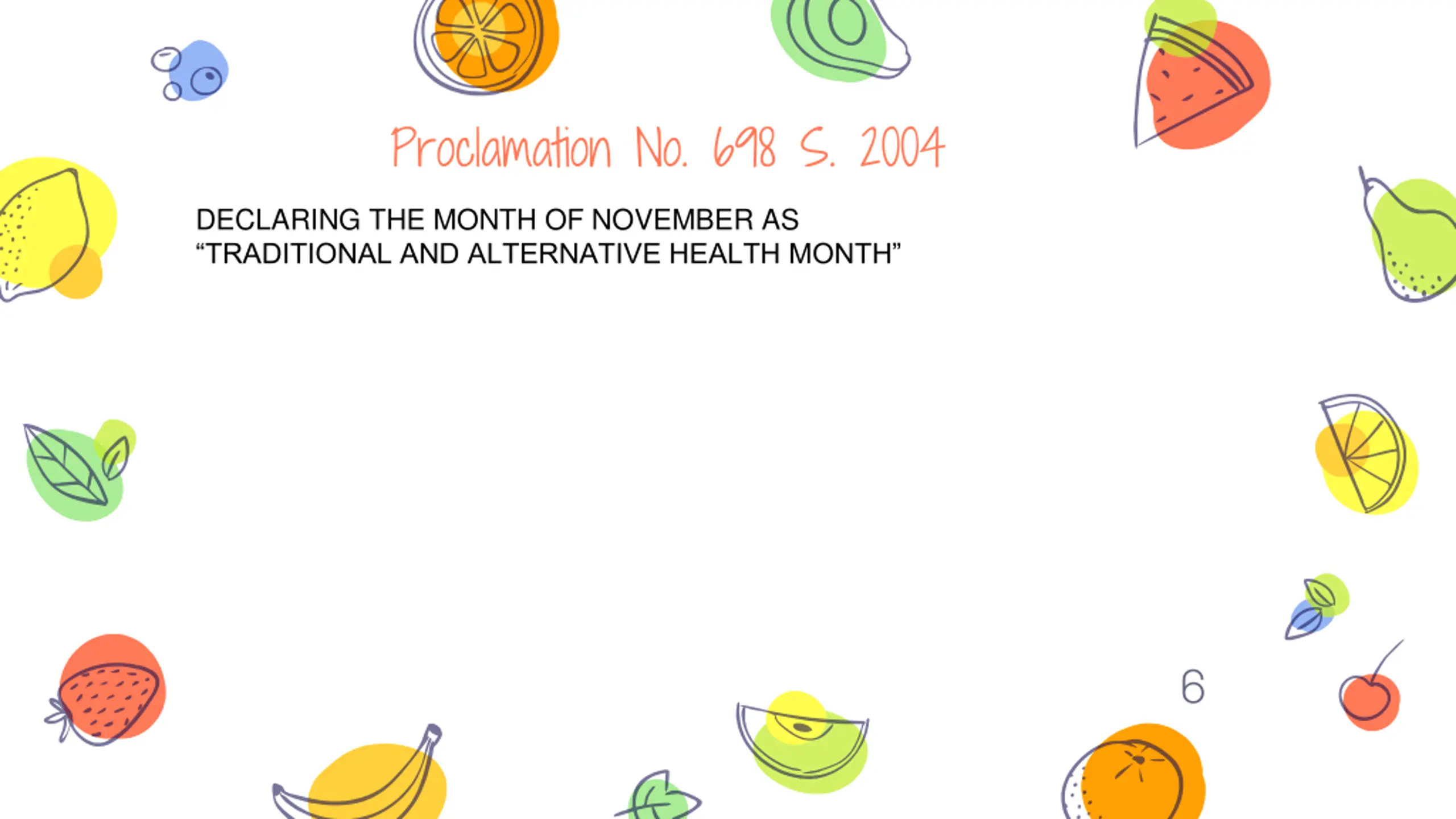 Proclamation No. 698 S. 2004 DECLARING THE MONTH OF NOVEMBER AS TRADITIONAL AND ALTERNATIVE HEALTH MONTH 6